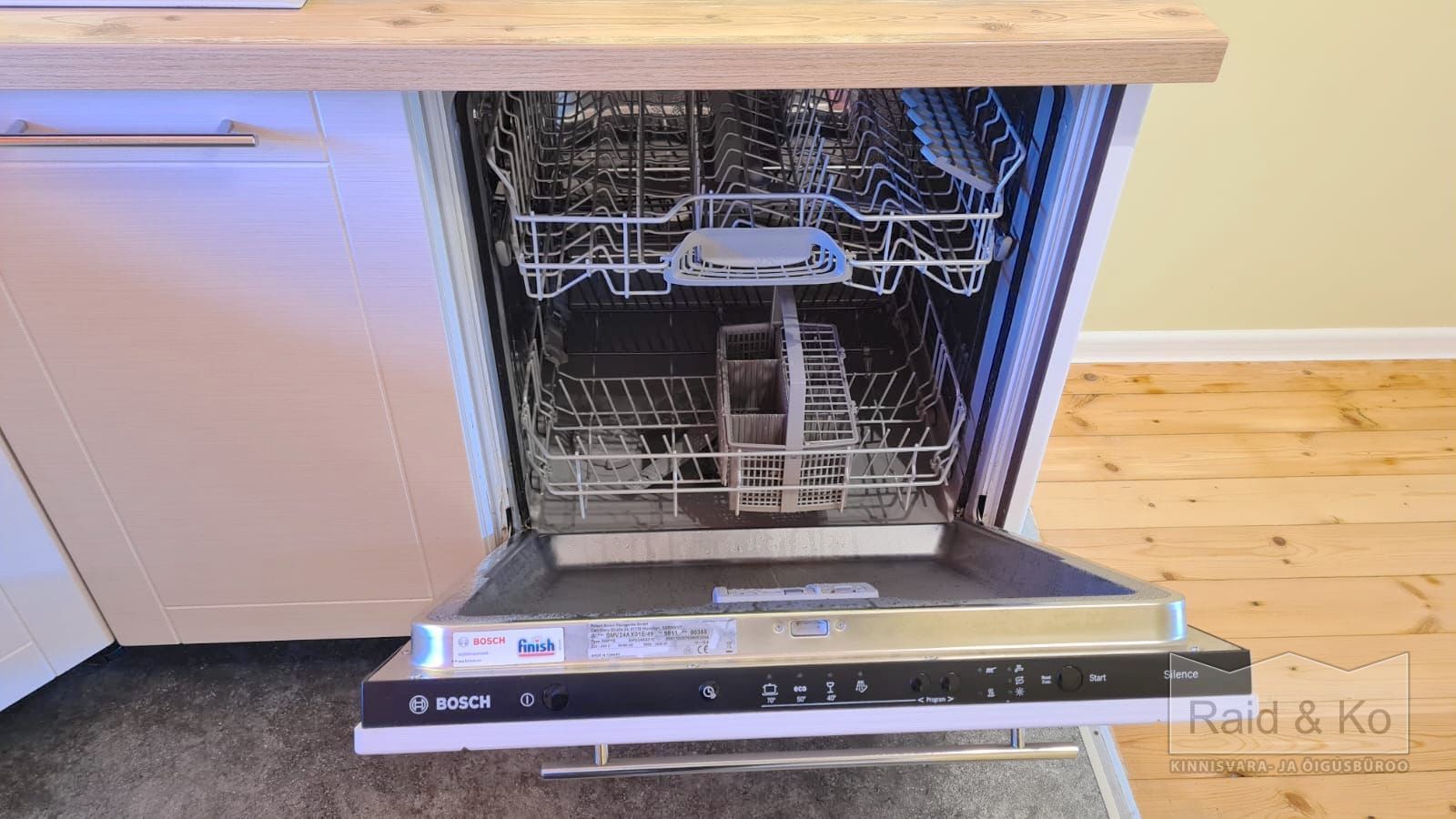 Köögimööbel on heas seisukorras ning varustatud keskmisest kvaliteetsema integreeritud tehnikaga. Muidugi ei puudu ka nõudepesumasin.