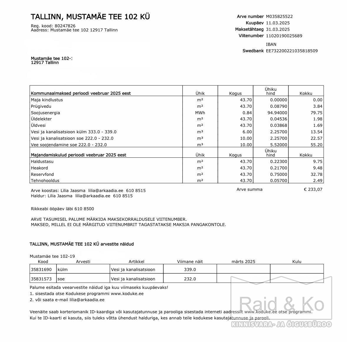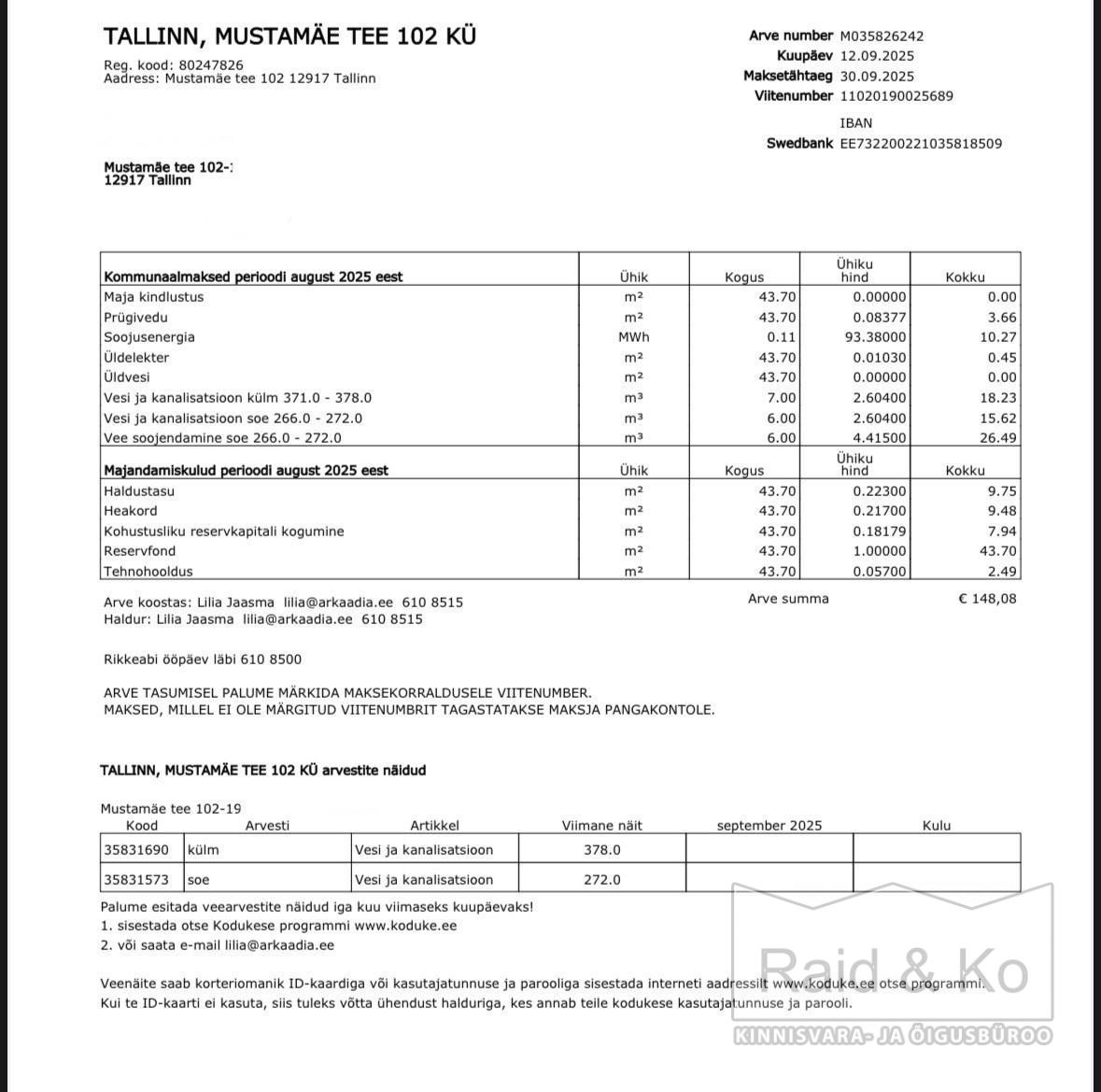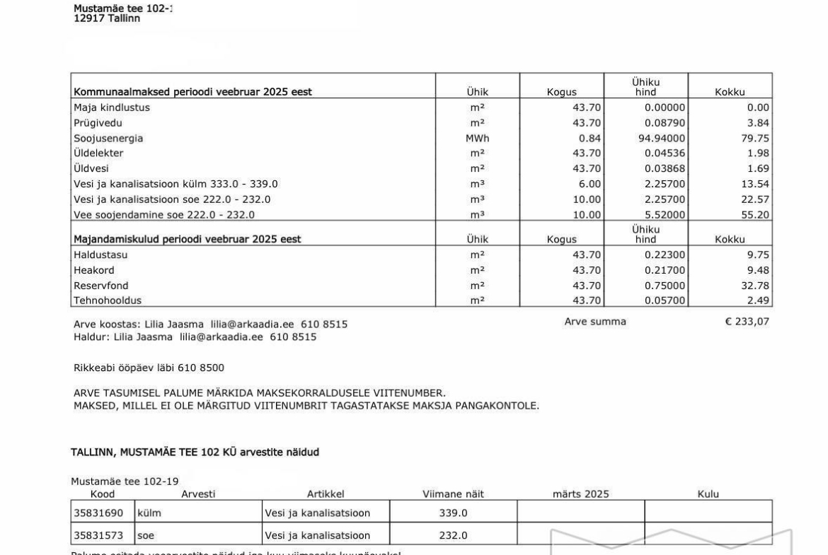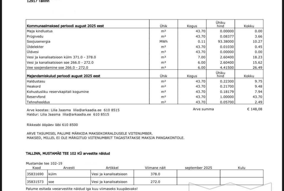Kommunaalkulud on mõistlikud. Näited lisatud fotode lõppu.