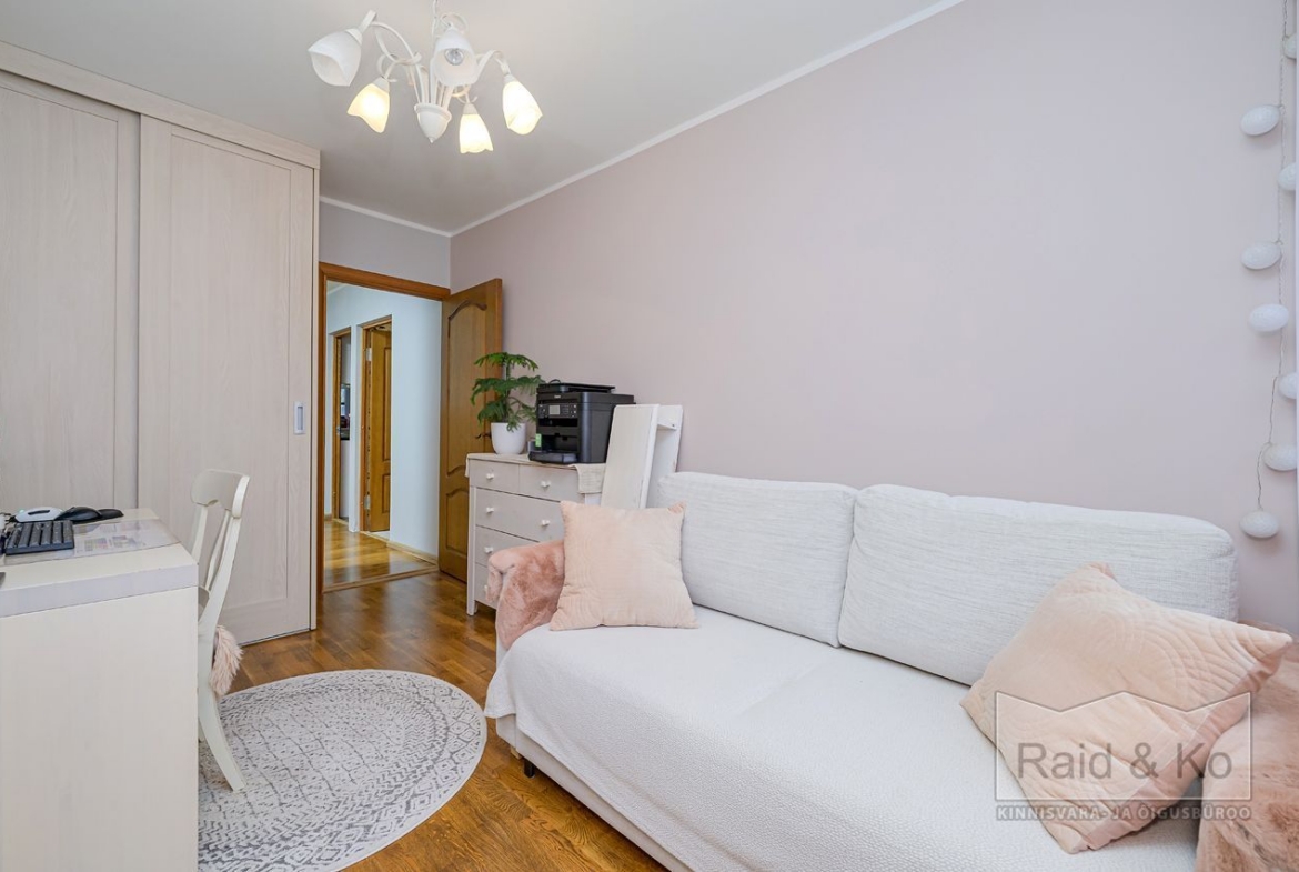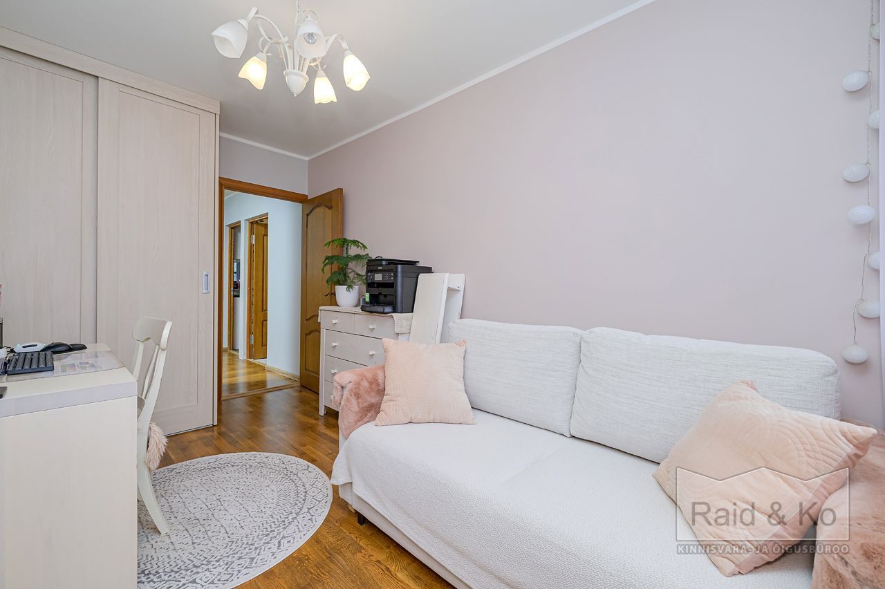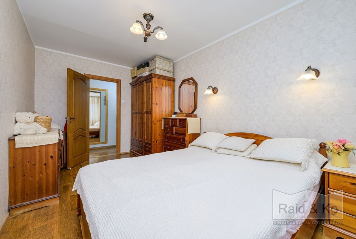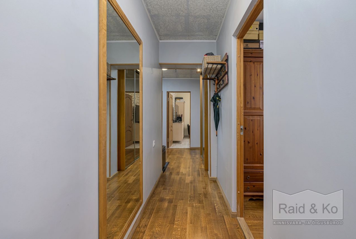 Läbi maja planeeringuga suur ja avar korter. Väga korras ja hea remondiga puhas korter. Korteri aknad (3x klaaspakett) avanevad maja kolme külge. Kõik magamistoad jäävad maja taha – vaikne ja päikesepoolne sisehoov. Ühes magamistoas on ka rõdu. Kogu korteri põrandat katab naturaalne puitparkett v.a. köögis, kus keraamilised plaadid (võimalus sisse lülitada ka elektripõrandaküte).