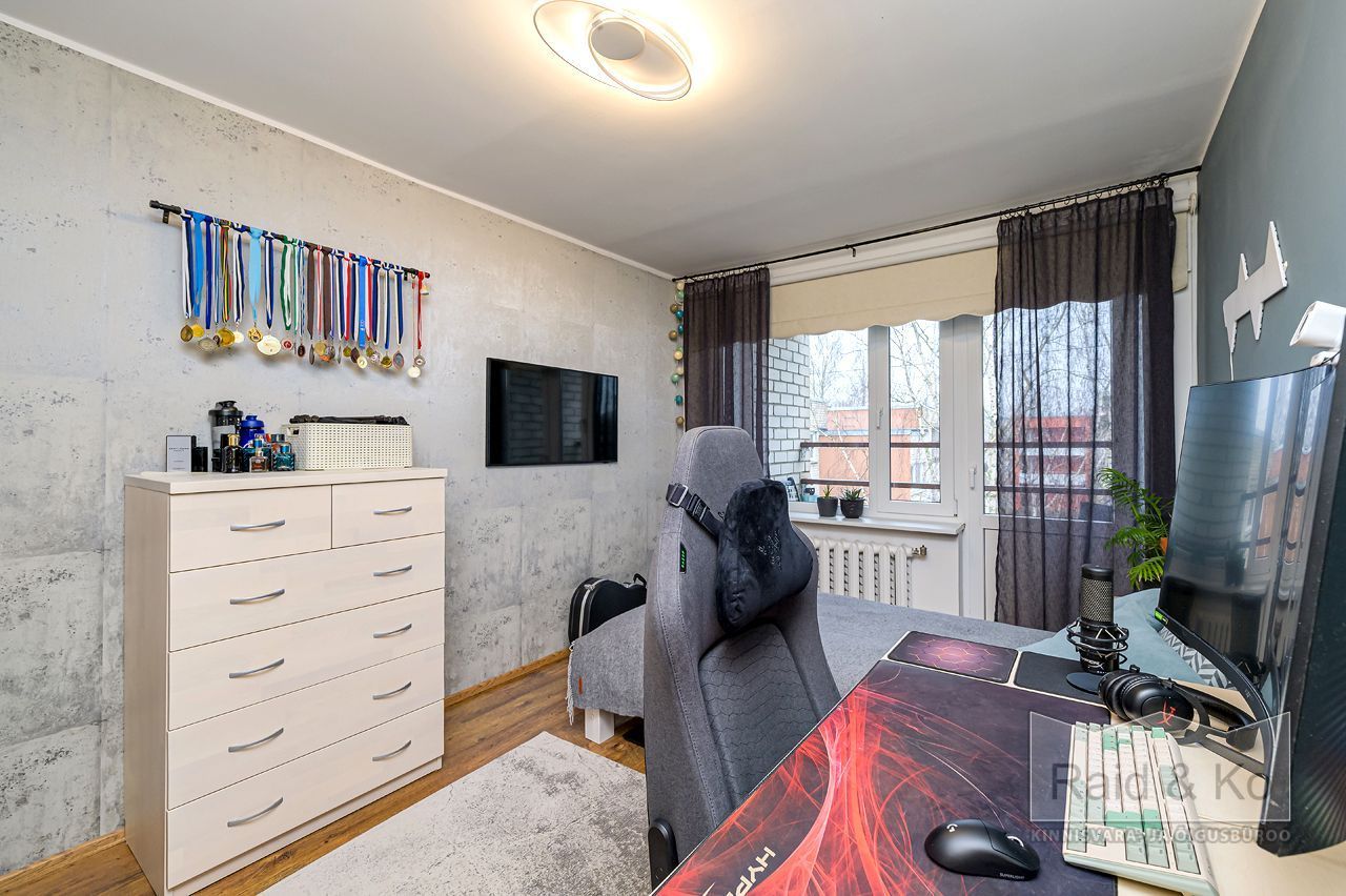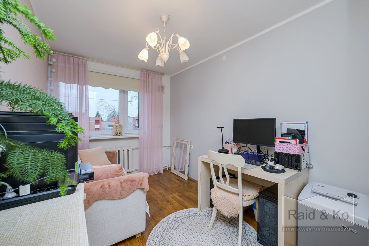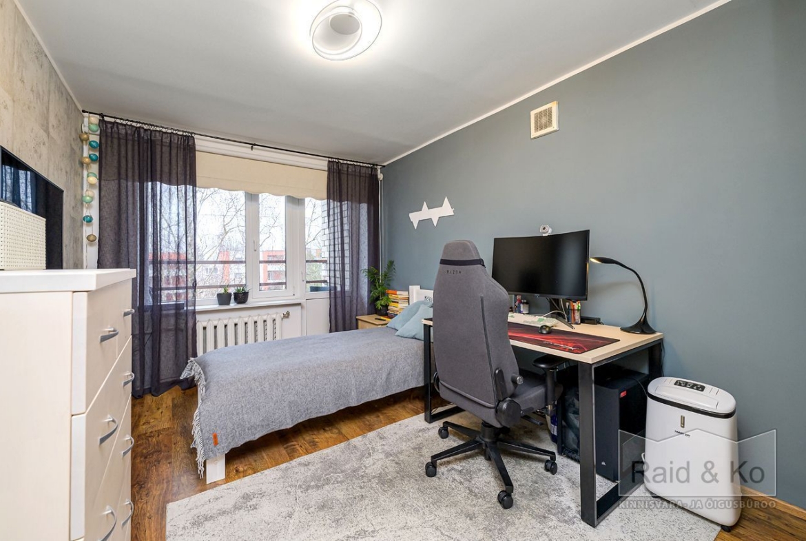 Läbi maja planeeringuga suur ja avar korter. Väga korras ja hea remondiga puhas korter. Korteri aknad (3x klaaspakett) avanevad maja kolme külge. Kõik magamistoad jäävad maja taha – vaikne ja päikesepoolne sisehoov. Ühes magamistoas on ka rõdu. Kogu korteri põrandat katab naturaalne puitparkett v.a. köögis, kus keraamilised plaadid (võimalus sisse lülitada ka elektripõrandaküte).
