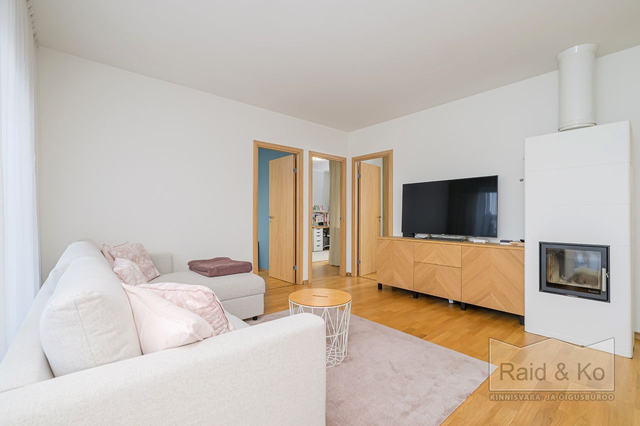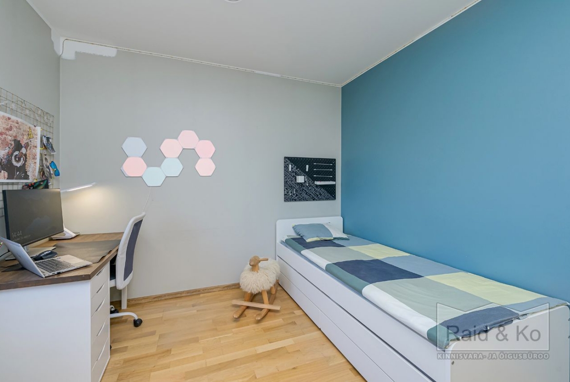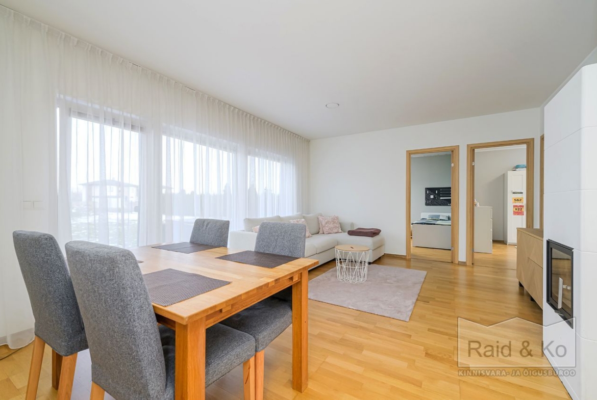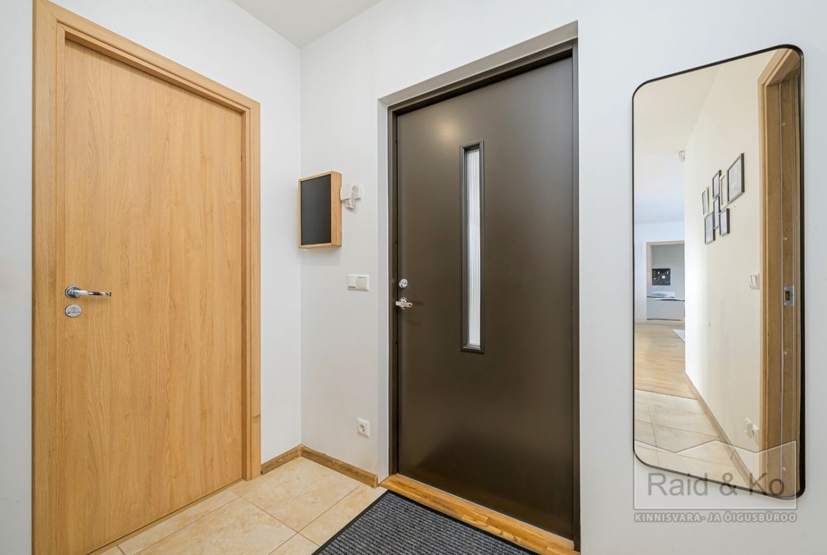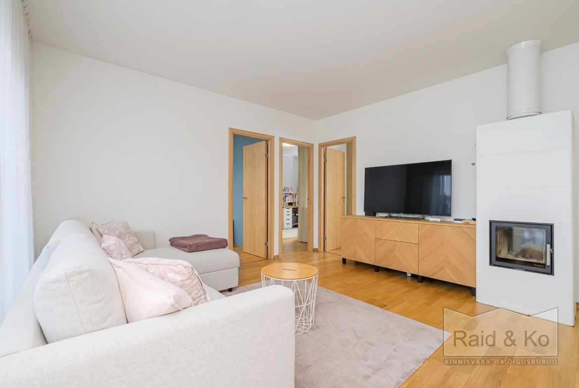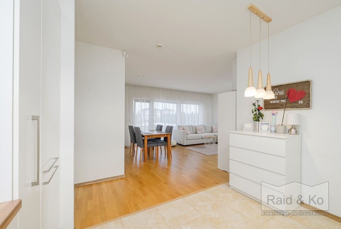 Seinad on värvitud heledates toonides, eluruumides katab põrandaid naturaalne parkett. San-ruumid on plaaditud.
