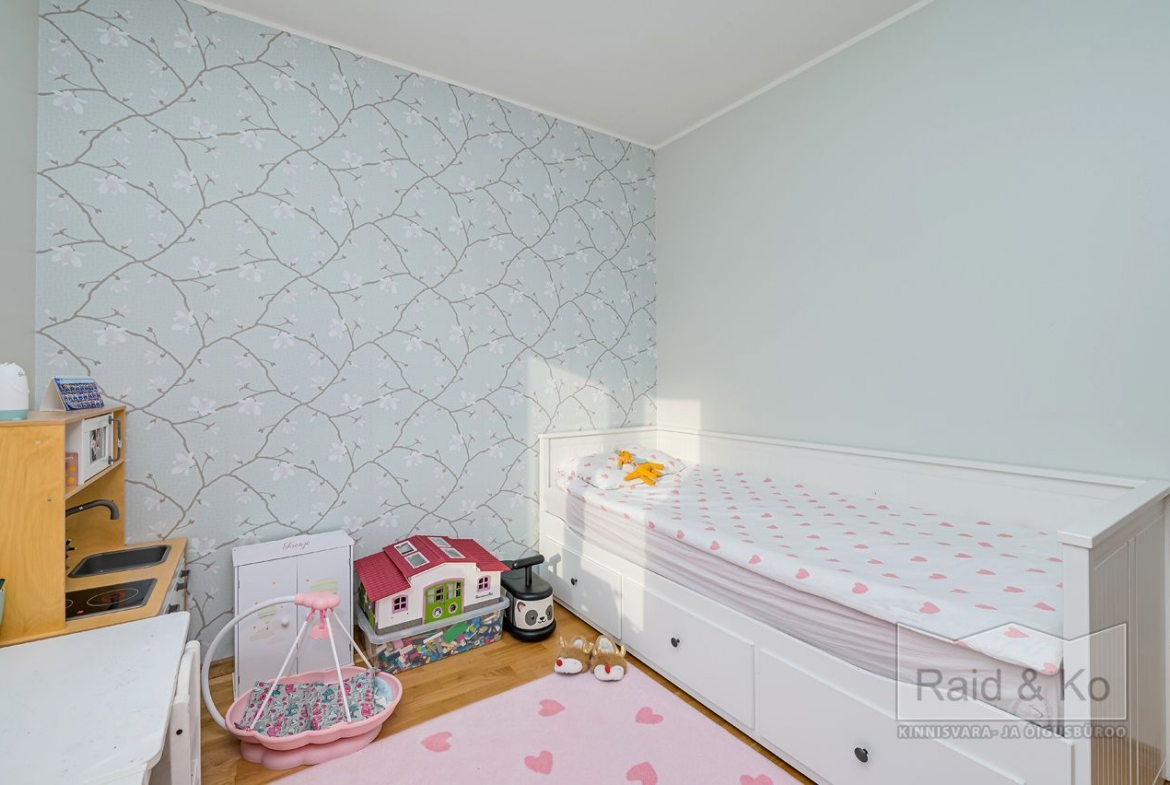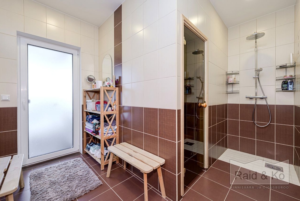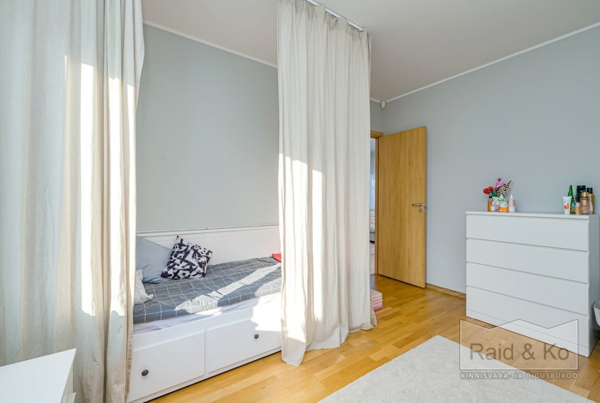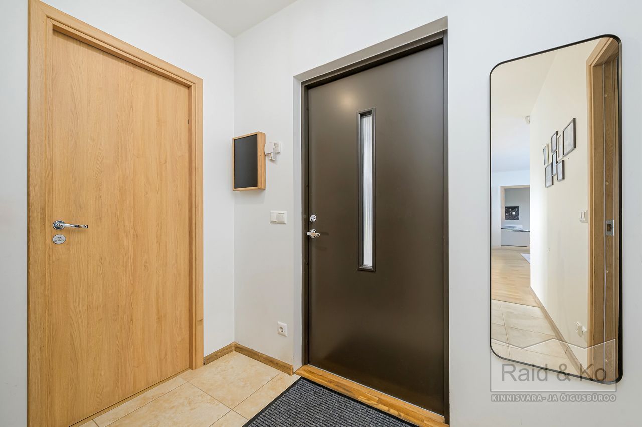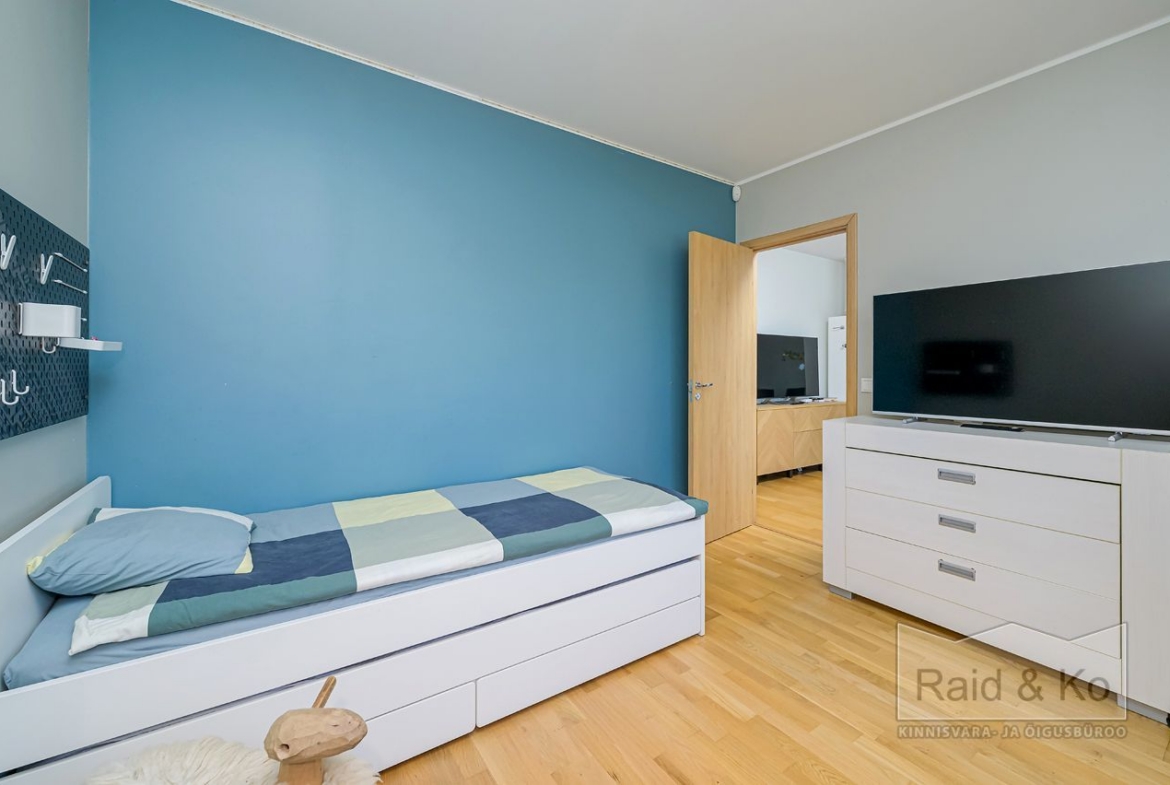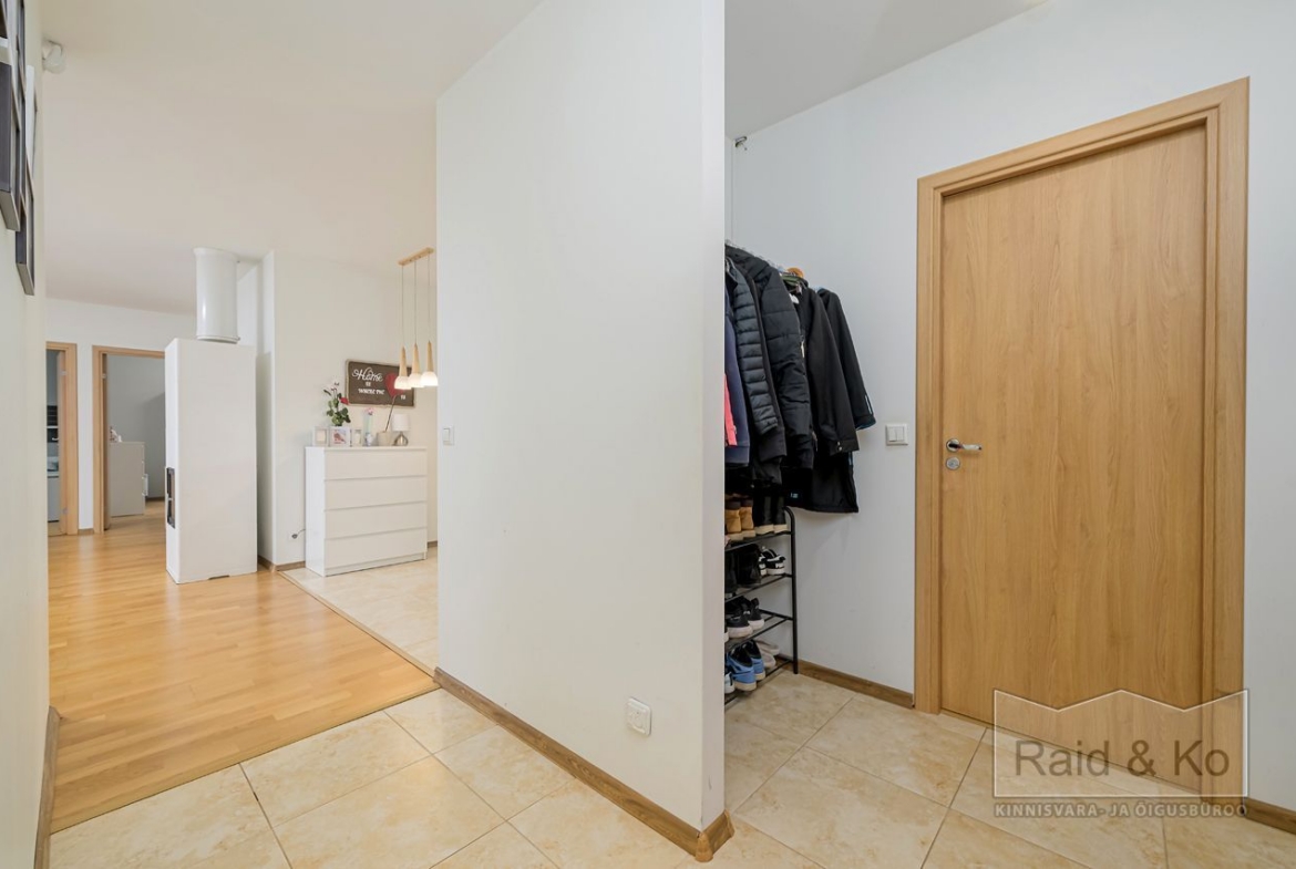 Seinad on värvitud heledates toonides, eluruumides katab põrandaid naturaalne parkett. San-ruumid on plaaditud.
