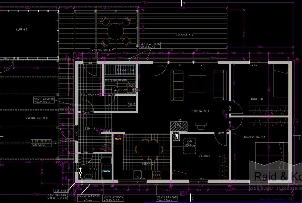 Puhta ja värske sisekliima tagab kaasaegne soojus- ja niiskustagastusega ventilatsioonisüsteem (AIROBOT), mida saab mugavalt juhtida nutiseadmest.