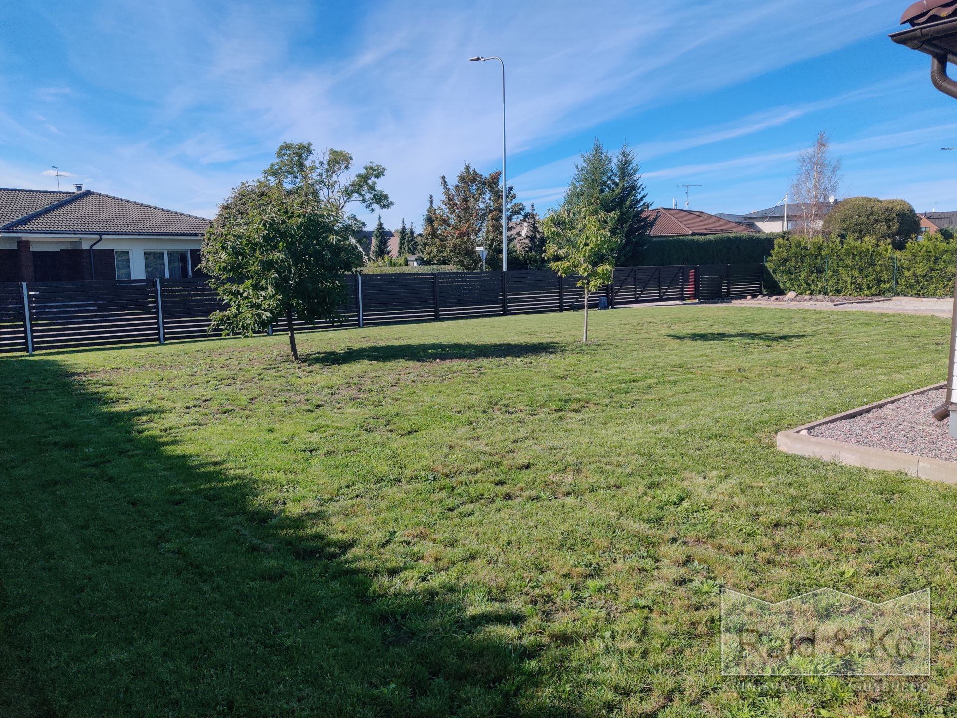 Krunt on ümbritsetud aiaga ning kolmest küljest ääristatud kõrge (ca 2 m) elupuuhekiga. Autovärav töötab automaatikaga.