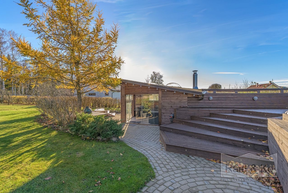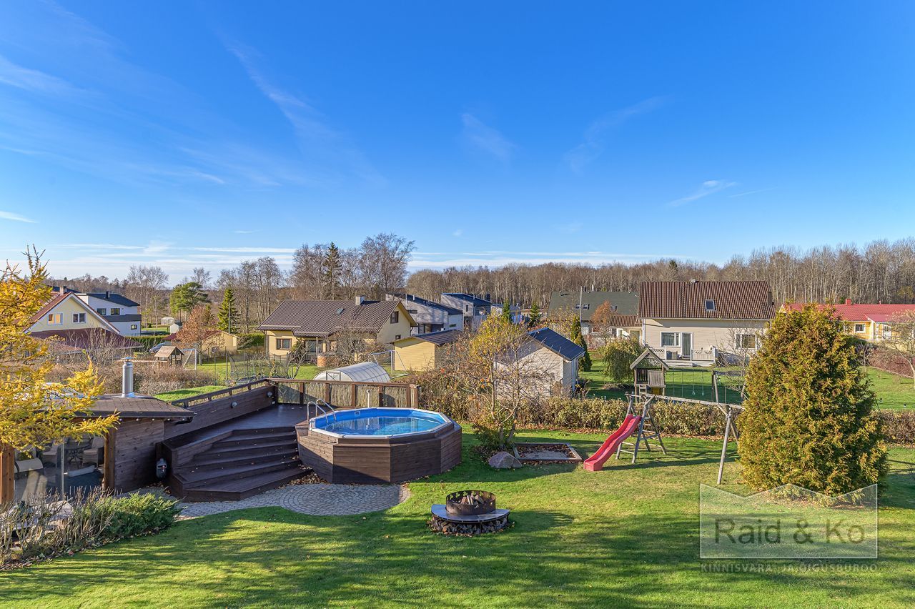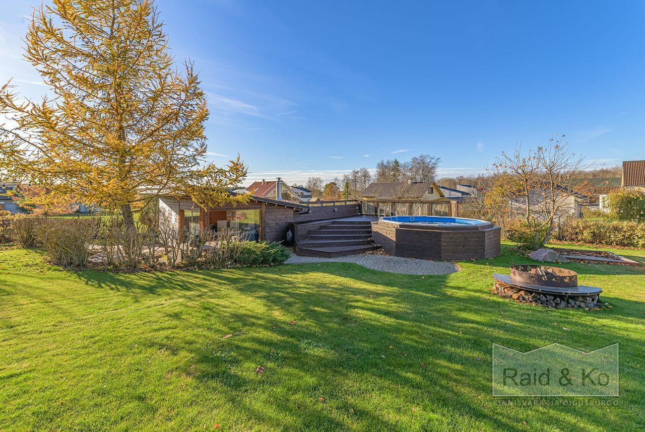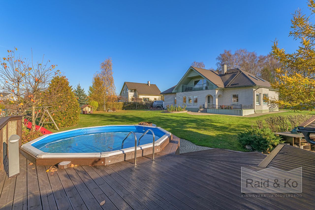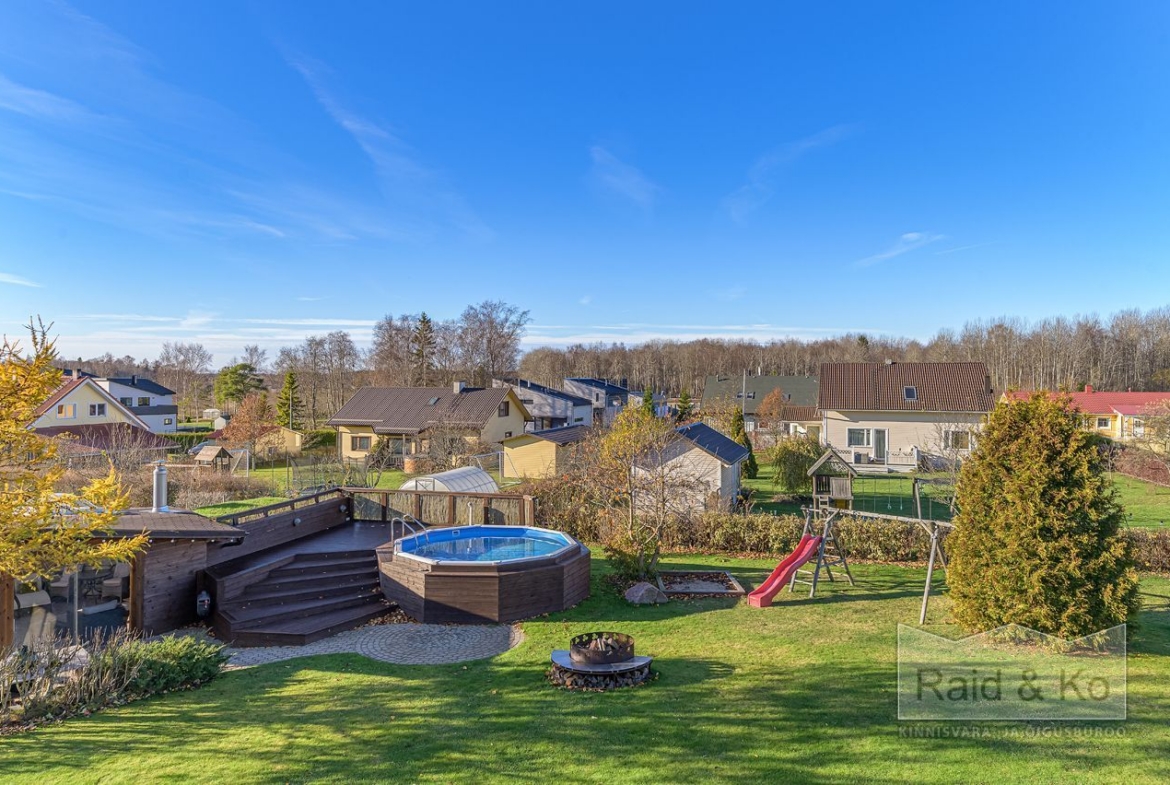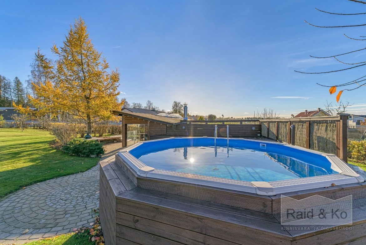saun, garaaž, kelder ja eraldiseisev grillimaja ning köetav bassein.