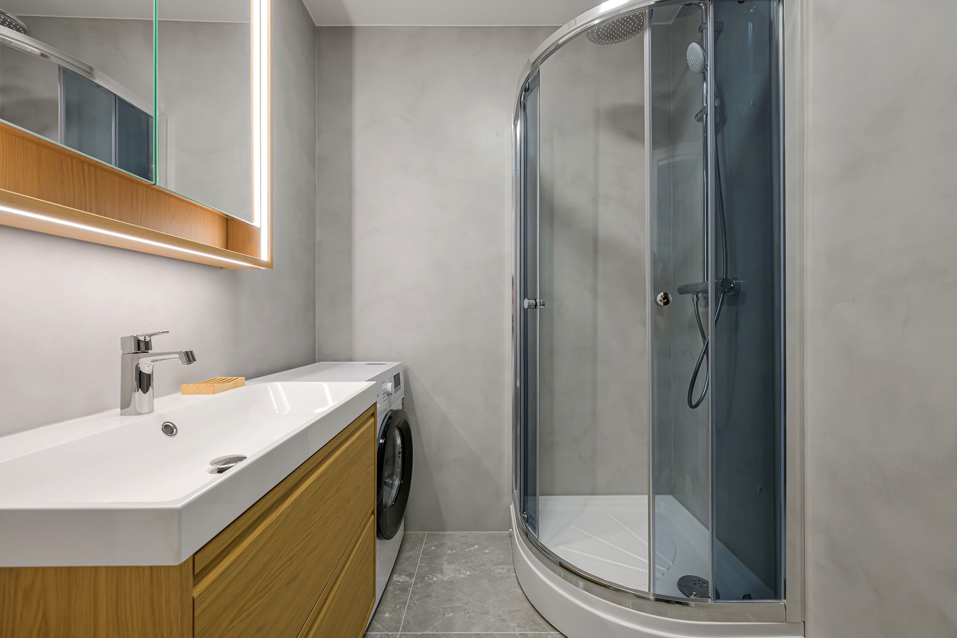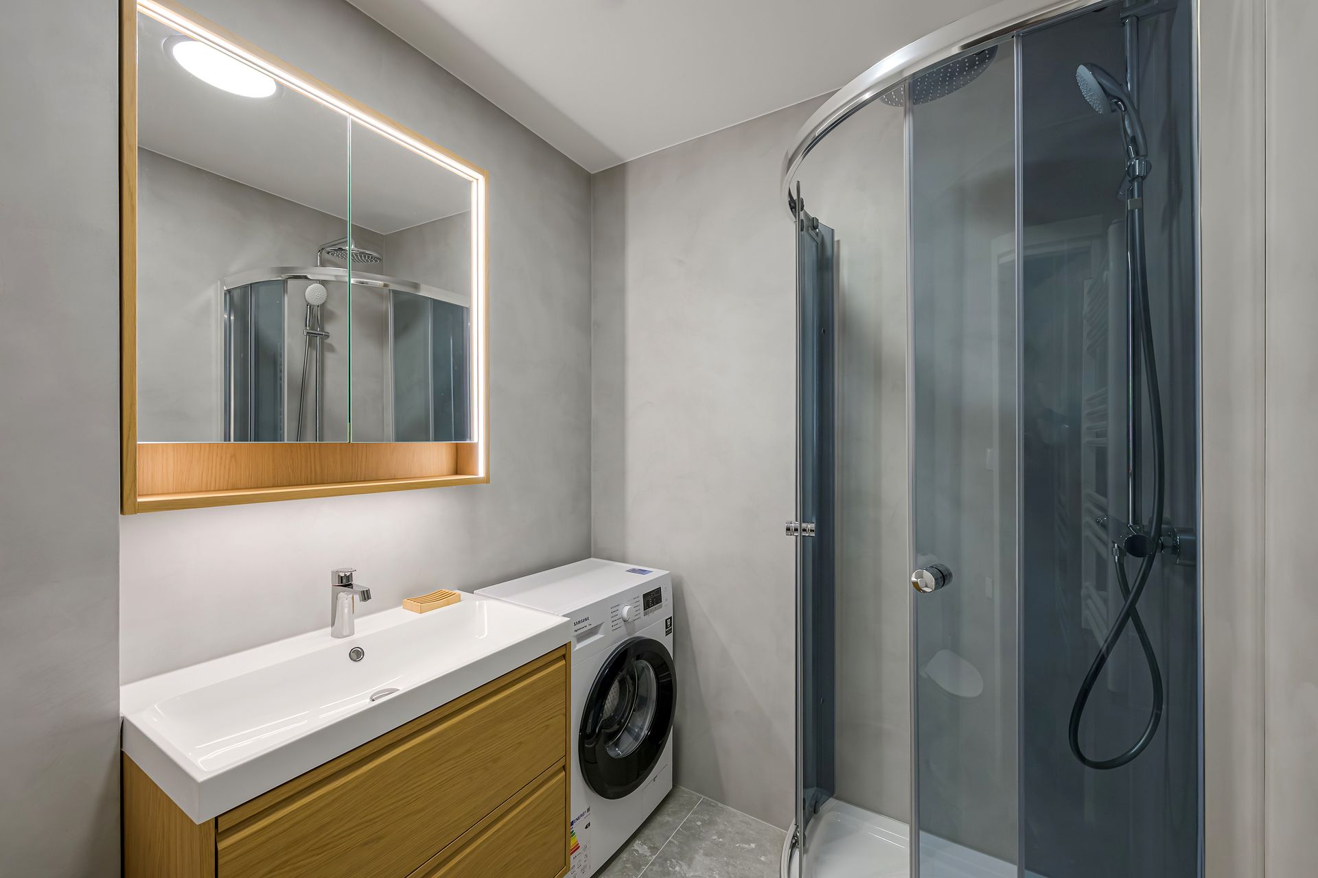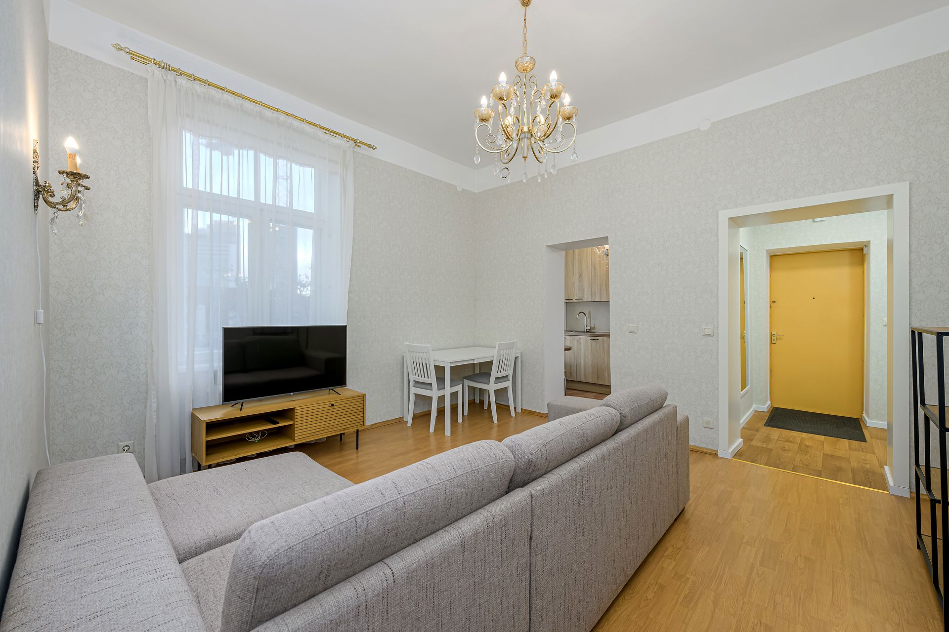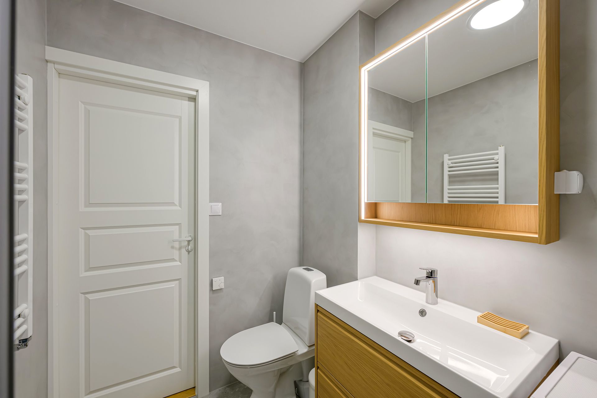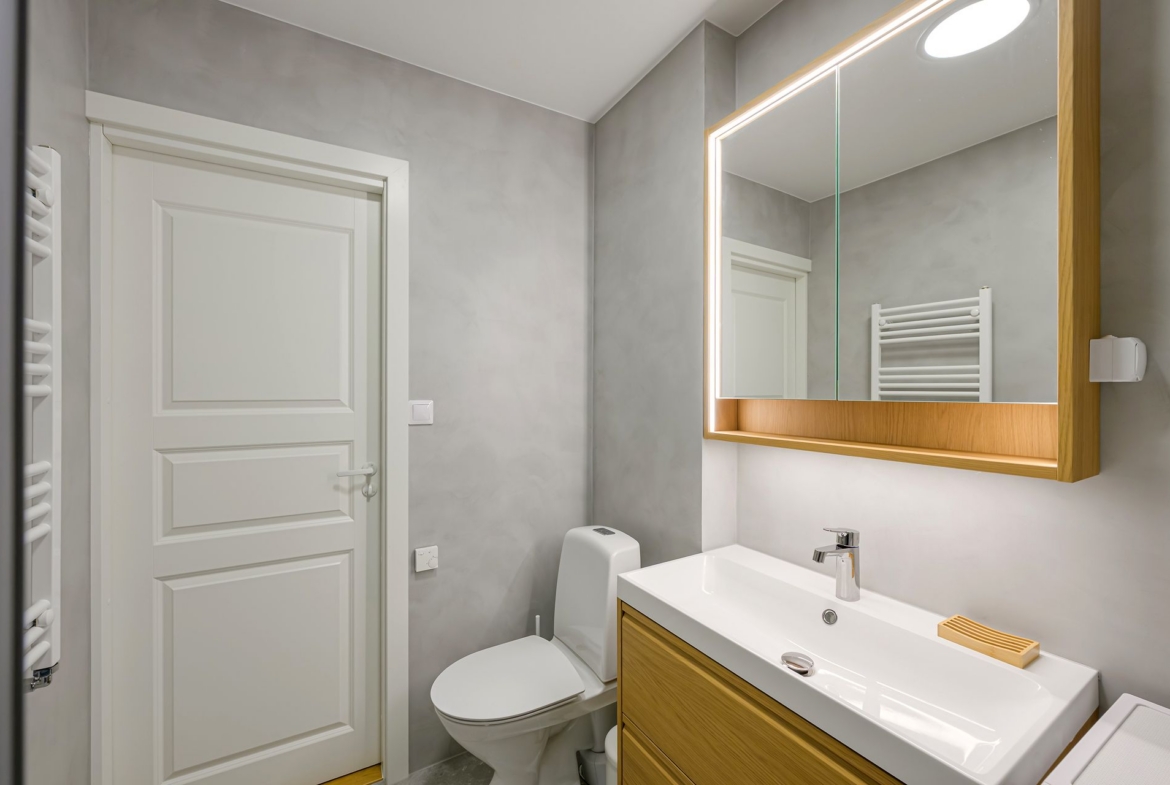 Korteris on tavapärasest kõrgemad laed, erilised aknad (puit-alumiinium) ning stiilsed malmradiaatorid.
