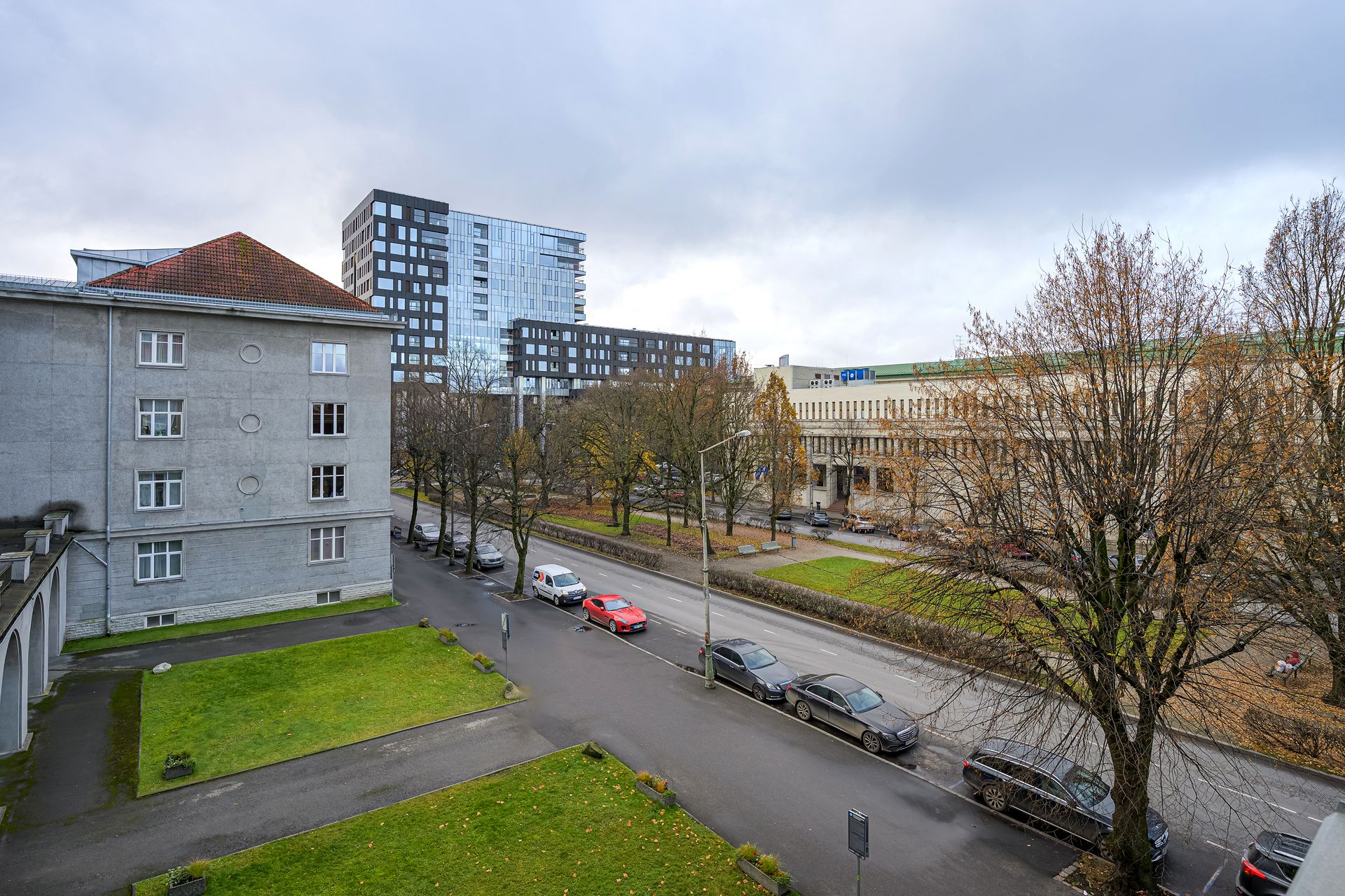 Korter paikneb maja kolmandal korrusel. Akendest on vaade maja küljele (Välisministeeriumi suunas) ja hoovi. Võimalus on nautida nii hommiku- kui ka õhtupäikest.