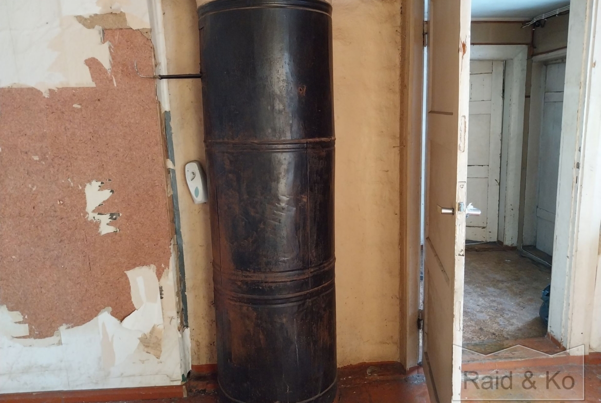 Köögi ja elutoa vahel on hästi säilinud omaaegse meistri kätetööna ilus ümmargune plekk-ahi. Köögis on toimiv puupliit. Eelmisel aastal laoti korstnale uus korstnapits.