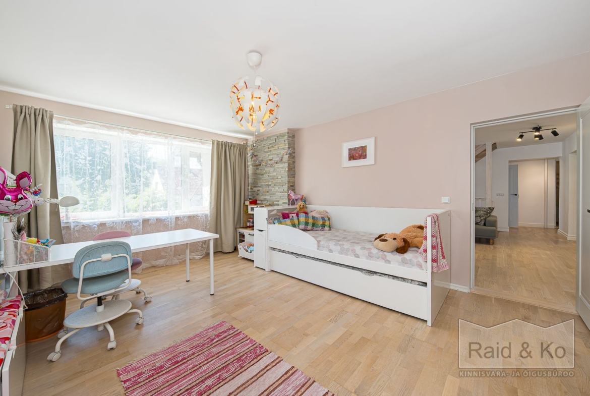 See maja on mõeldud neile, kes vajavad ruumi. Mitte ainult ruutmeetrites, vaid ka mõtte- ja eluruumis. Siin on piisavalt seinu ja tasandeid, et perel oleks koos olles hea, kuid samas jääks igale liikmele omaette nurk. Aed on paras – piisavalt privaatne, et tunda end oma maailmas, aga mitte nii suur, et muutuks koormaks.