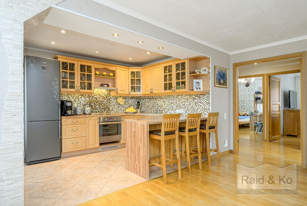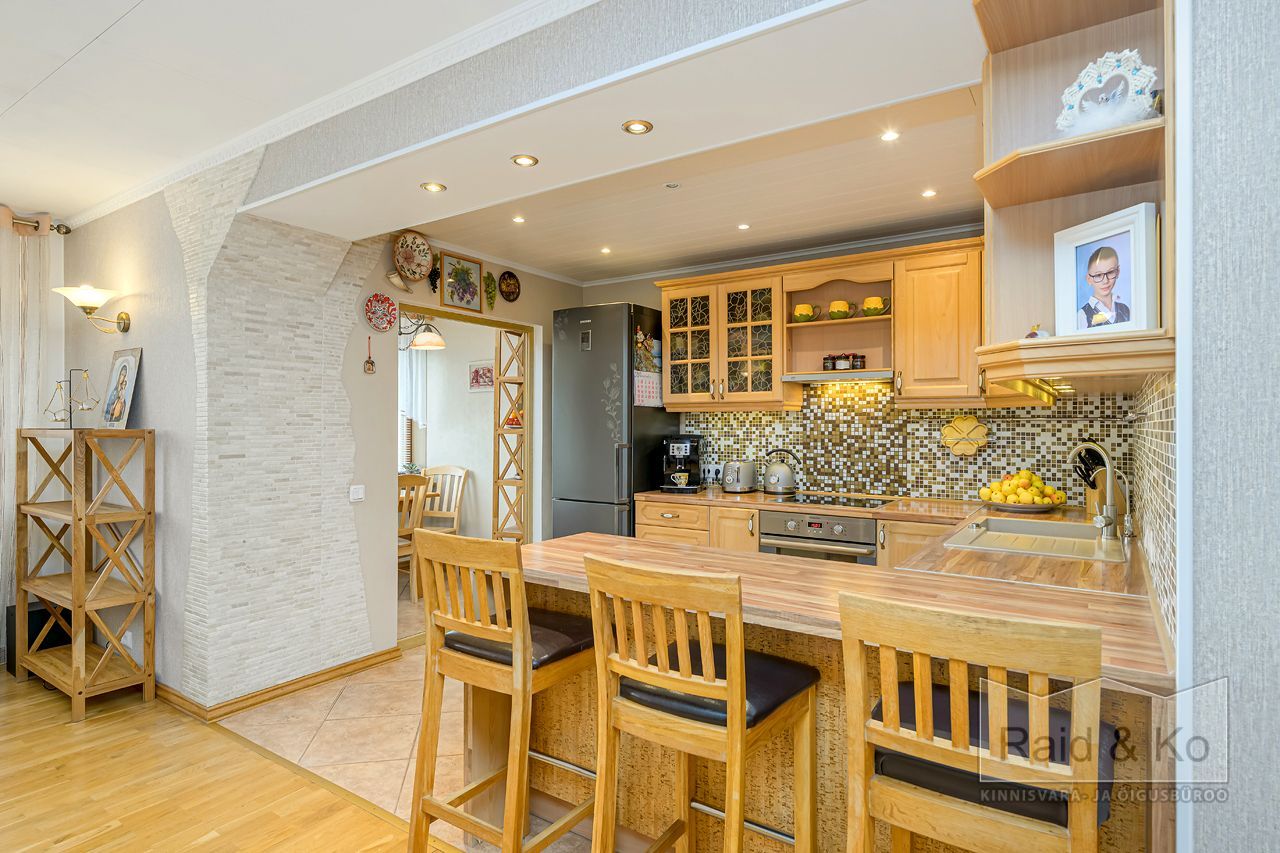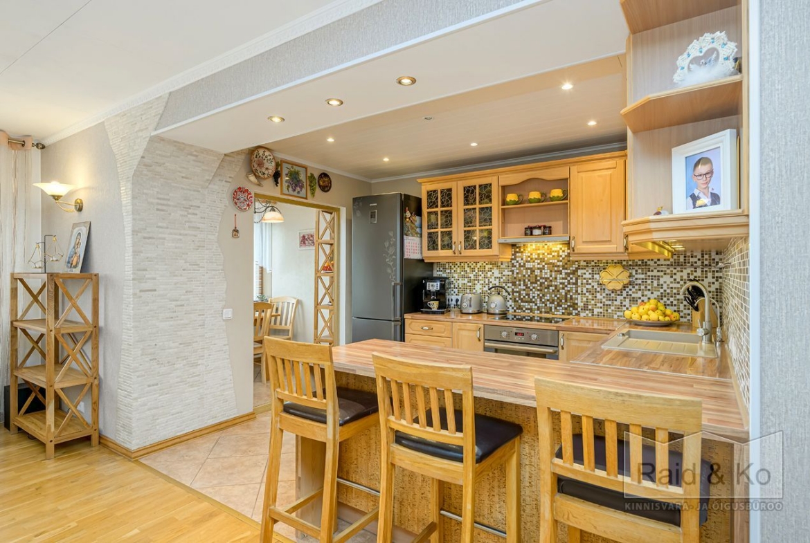 Korteris on tehtud põhjalik remont: vahetatud on elektrijuhtmestik ja torustik, välisseinad on seestpoolt soojustatud. Köögis on kvaliteetne täispuidust tammest mööbel koos tehnikaga (külmkapp, elektripliit, nõudepesumasin, ahi, õhupuhasti). Tubades on topeltpuitaknad tuulutusfunktsiooniga, elutoas laiad kahepoolseid uksed, teistes tubades puidust siseuksed. Radiaatoritel on soojuse reguleerijad. Seinad on kaetud maitsekalt valitud tapeediga, aknaid katavad kerged valgusläbilaskvad kardinad. Põrandal naturaalne tammeparkett.