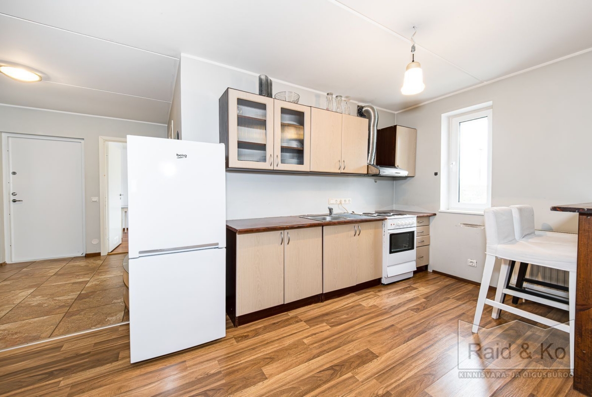 Korterisse jääb sisse köögimööbel, pliit, külmik, voodi, diivan ja suur riidekapp.