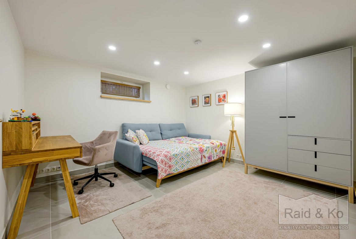 0-korrusel on majandusruum, saunakompleks, väike kabinet/magamistuba ja sauna eesruum, mida samuti saab kasutada magamistoana.
