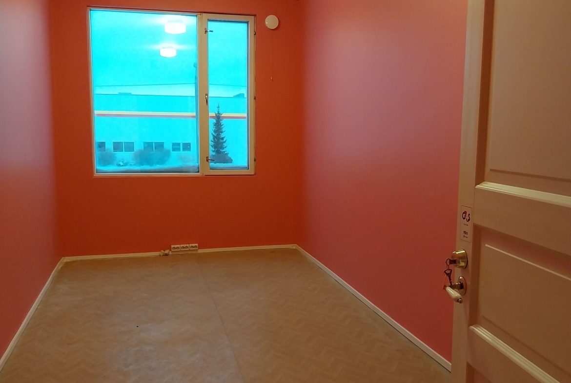 Vaikne, valge kontoriruum 2. korrusel. Aken majaesise parkla poole.