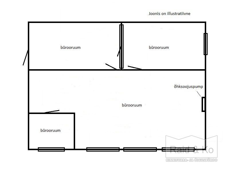Üürile anda kaasaegne büroo, peahoone II korrusel. Kokku 4 ruumi. Kahte ruumi eraldab klaaslükandsein. Eraldi lukustatav on väike raamatupidaja tuba. Büroo aknad majaesise parkla poole.