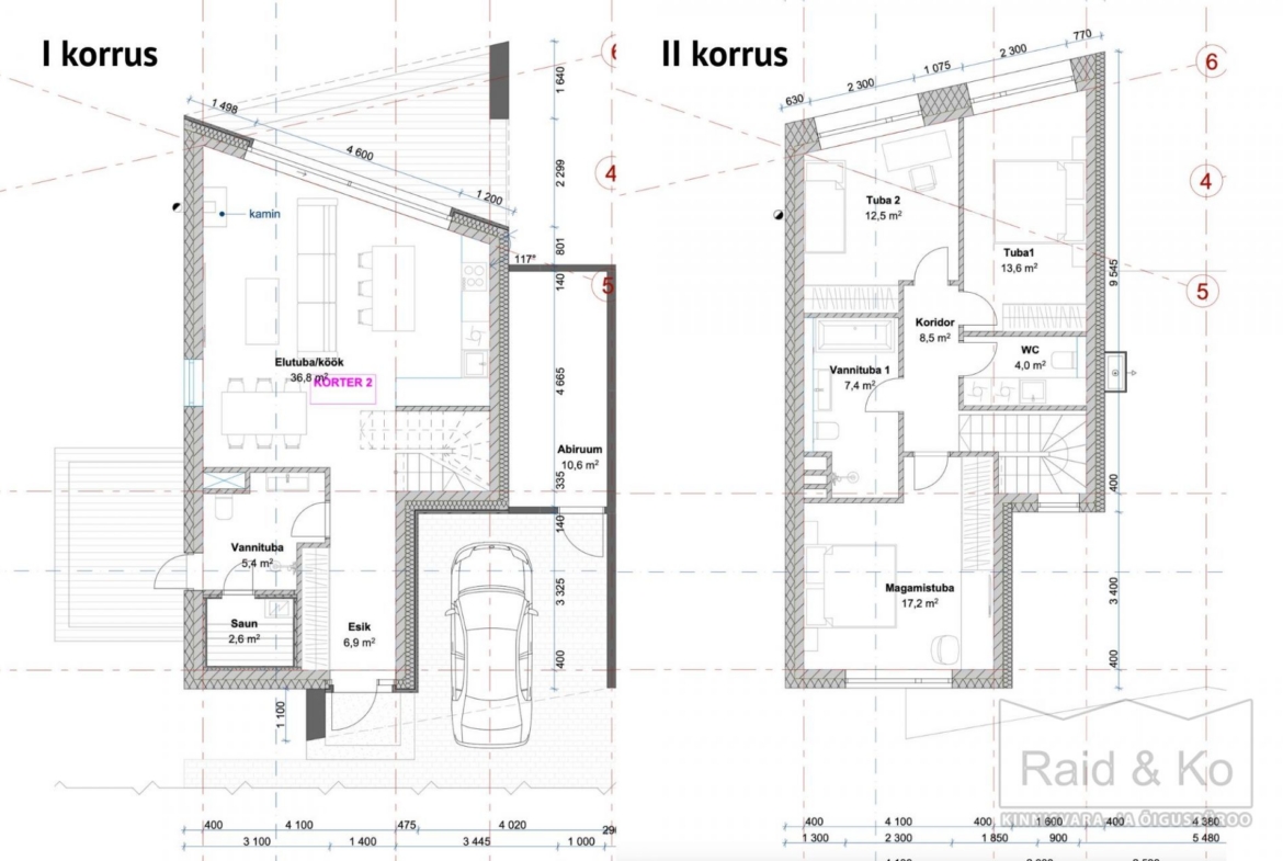 Esimene korrus: avar esik. Köök-elutuba pääsuga terrassile suure liugukse kaudu. Saun ja duširuum, millel samuti pääs õue. Elutoas valmidus kamina paigaldamiseks.