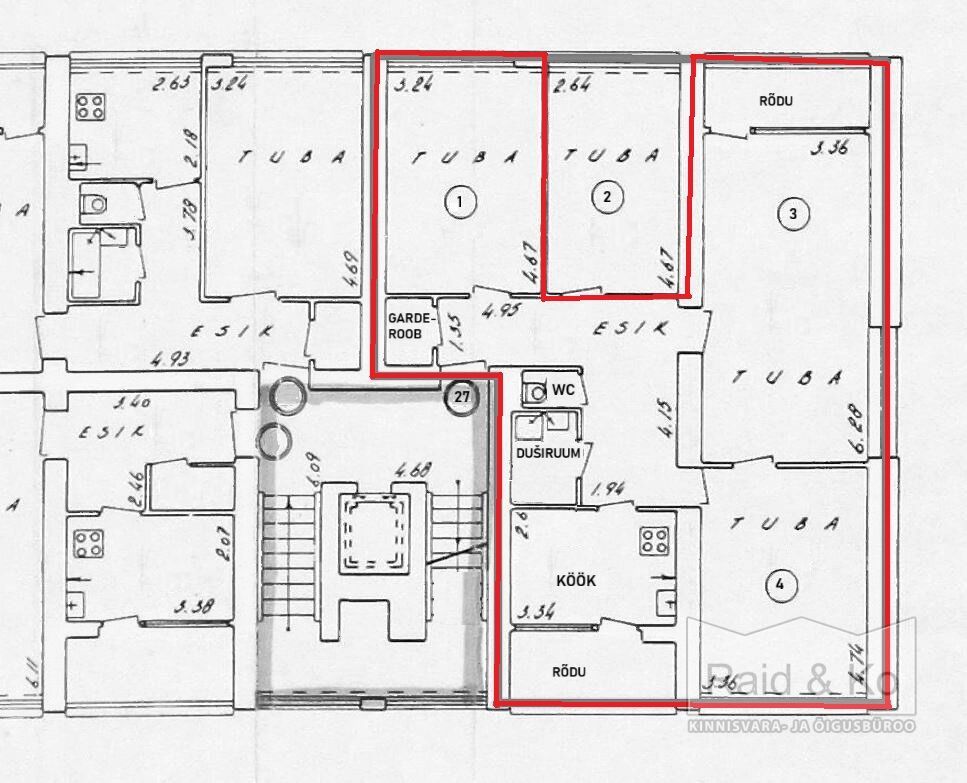 Üürile anda Mustamäe alguses olevas 4 toalises korteris 3 tuba (plaanil 1; 3; 4). Kuni remonttööde lõpuni on üüri hind madalam ja tõuseb peale tööde lõppu.