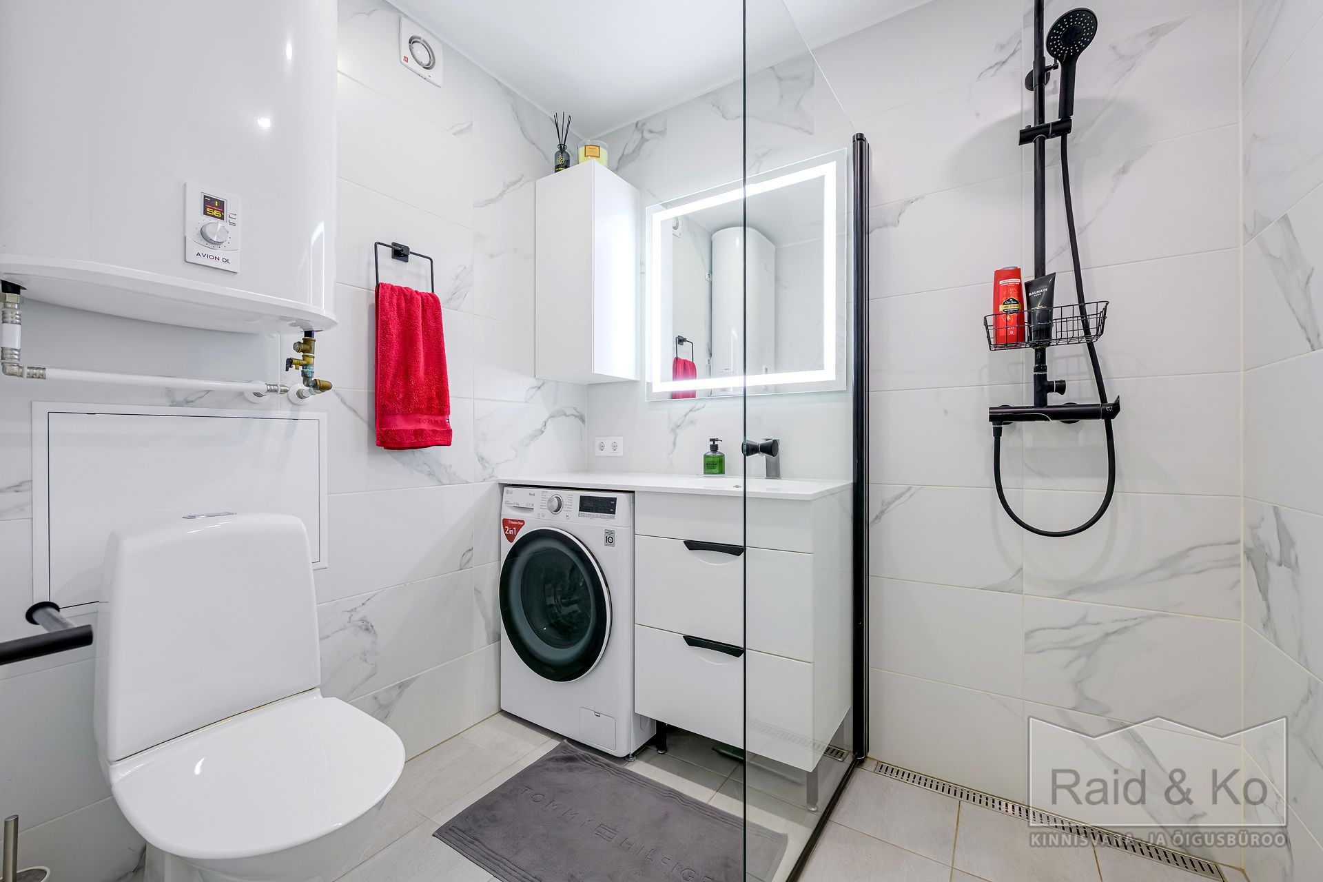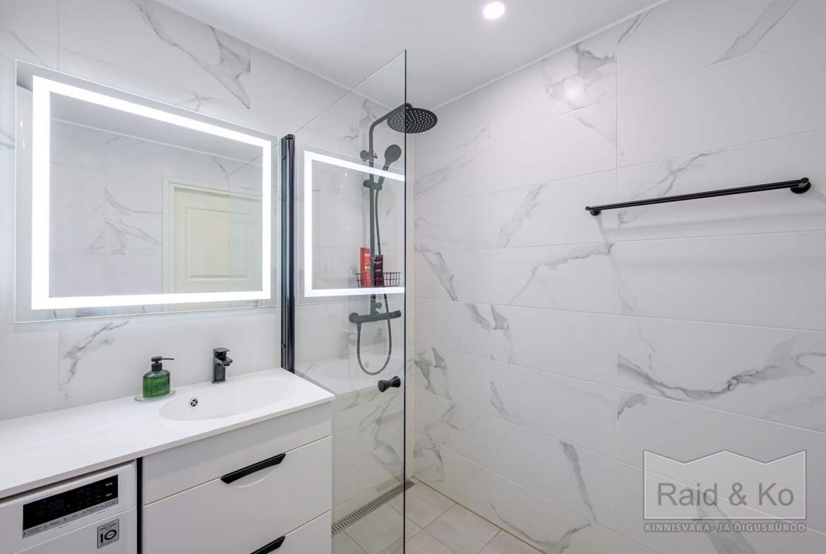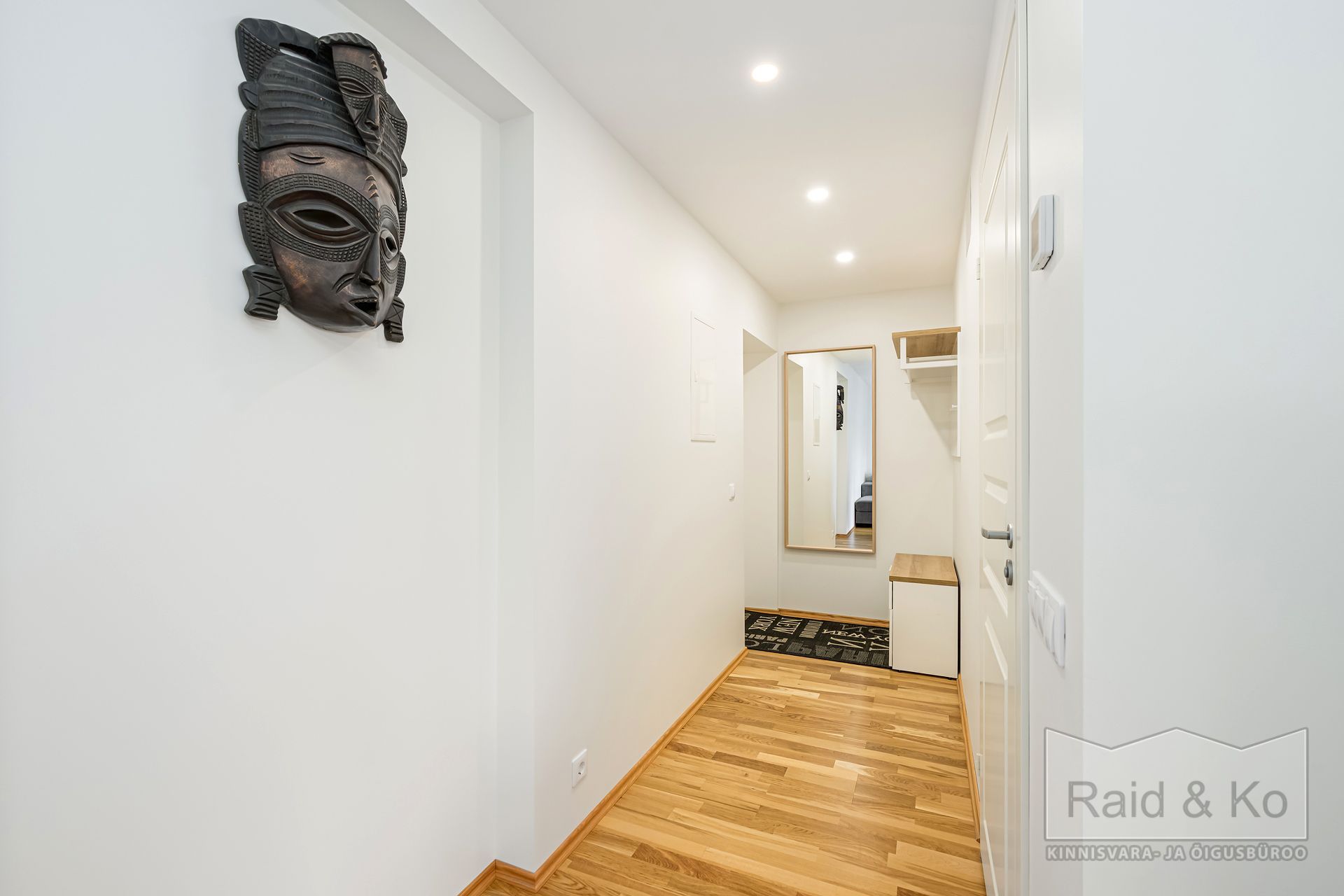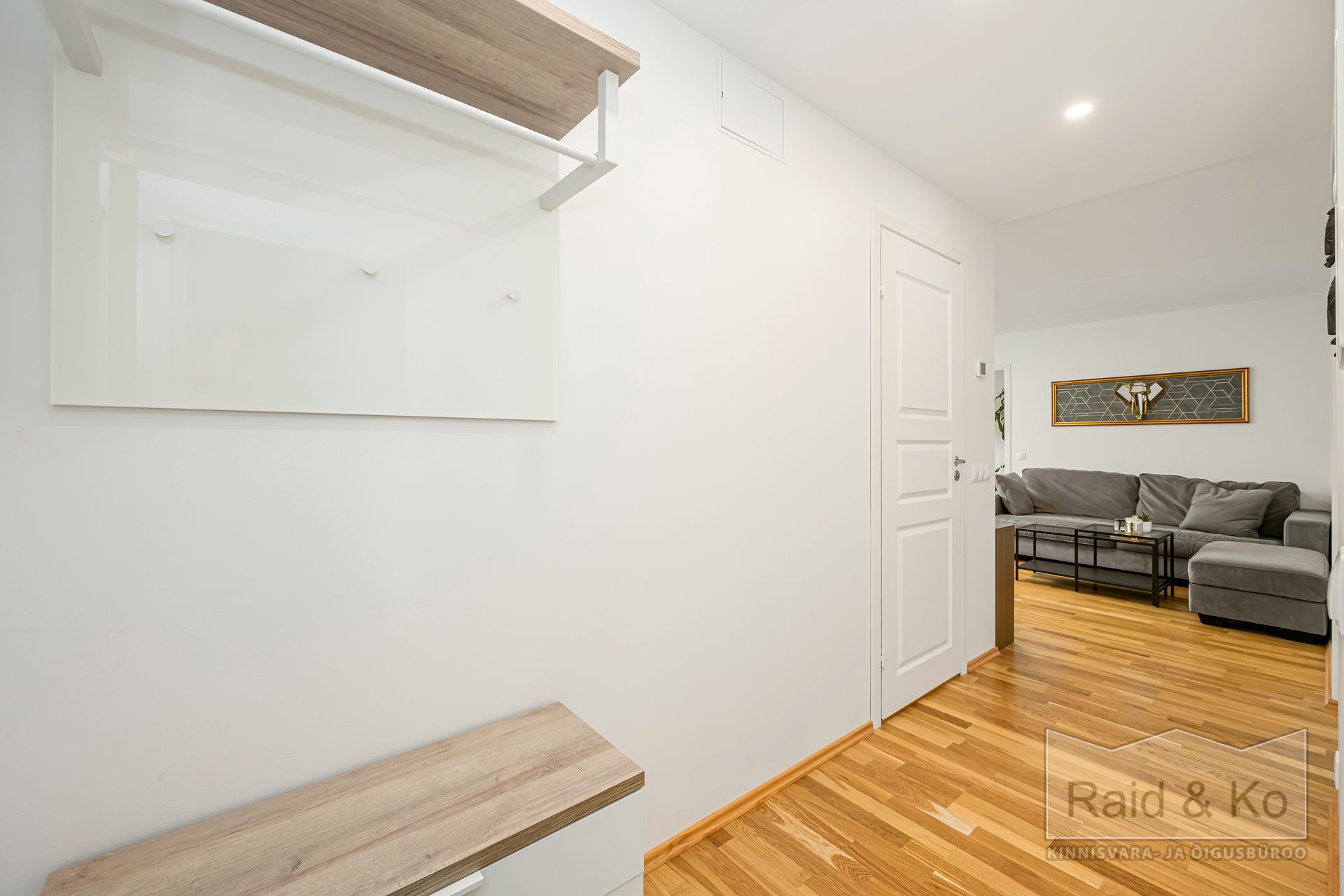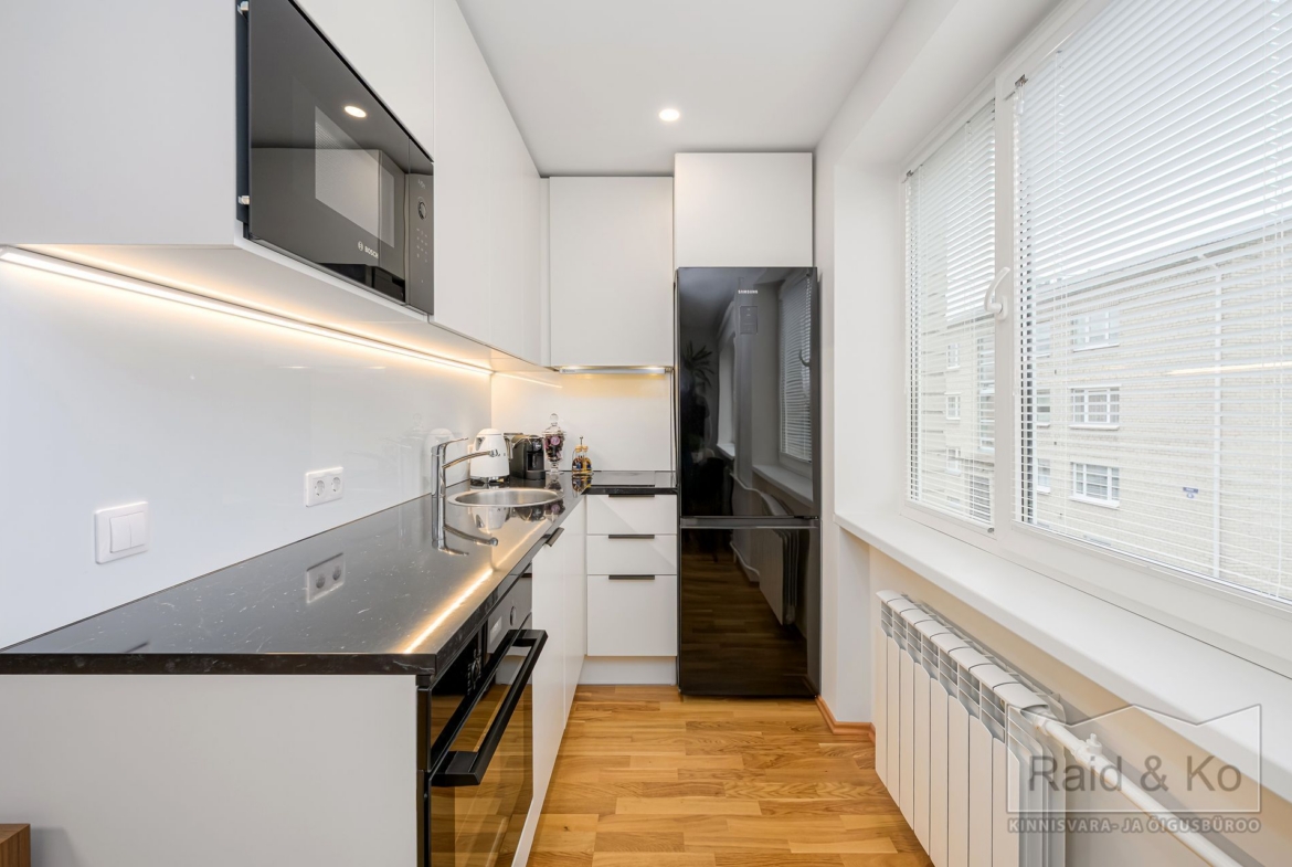 Põrandatel naturaalne puitparkett. Köögimööbel tehnikaga k.a. nõudepesumasin. Vannitoas on elektripõrandaküte. Korterisse ei jää kõlarid ja seinakaunistused.