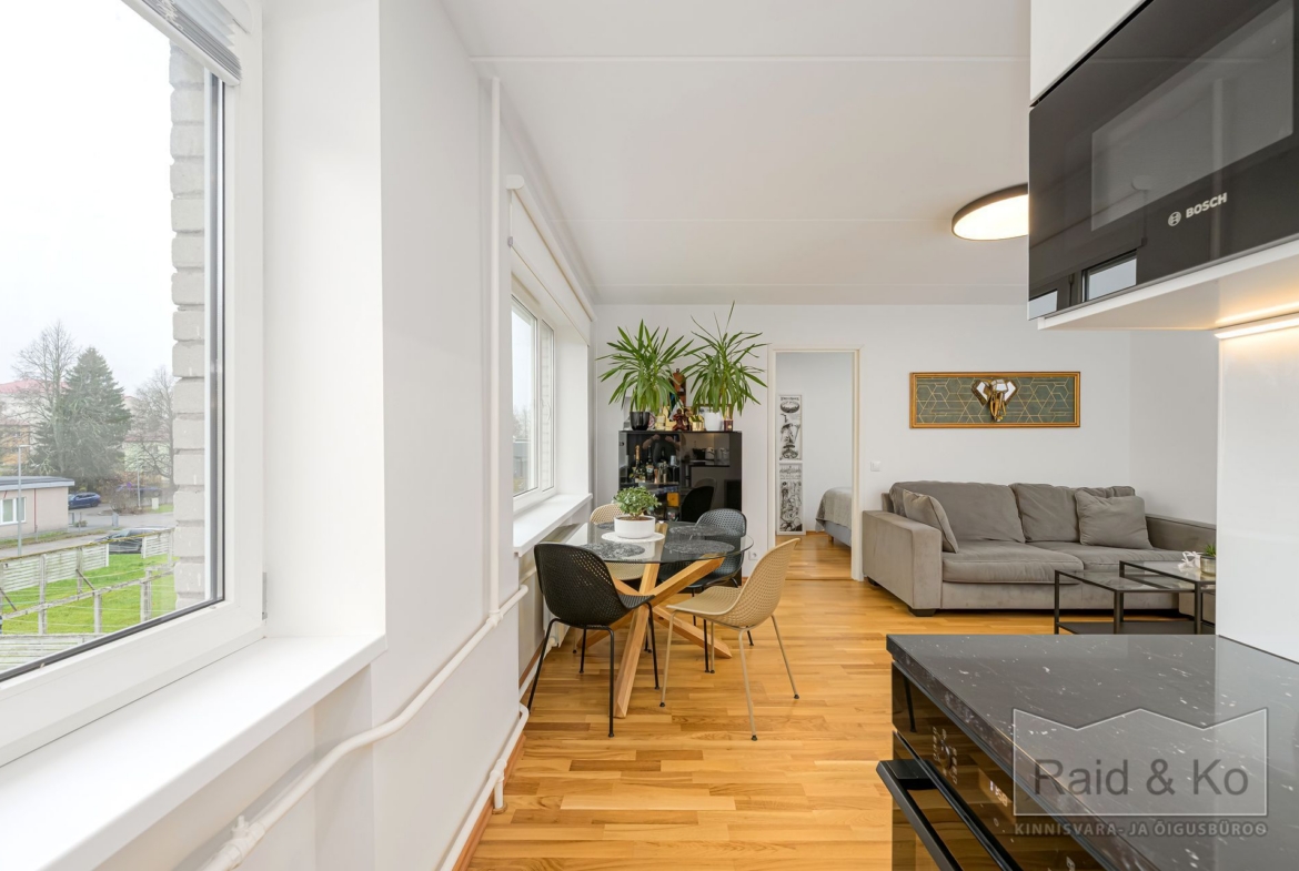 Renoveeritud, valgusküllane, väga korras, soe ja puhas korter. Kõik korteri aknad avanevad maja taha – päikesepoolne. Avar vaade.
