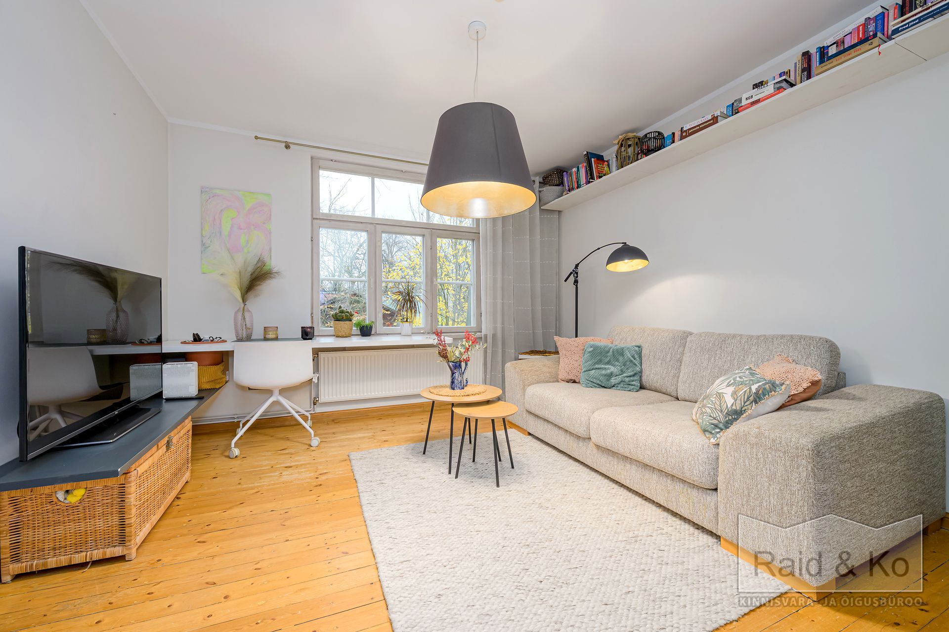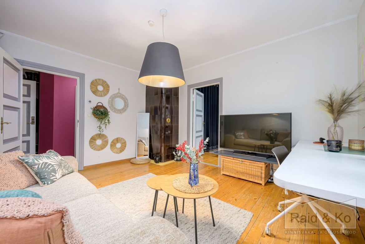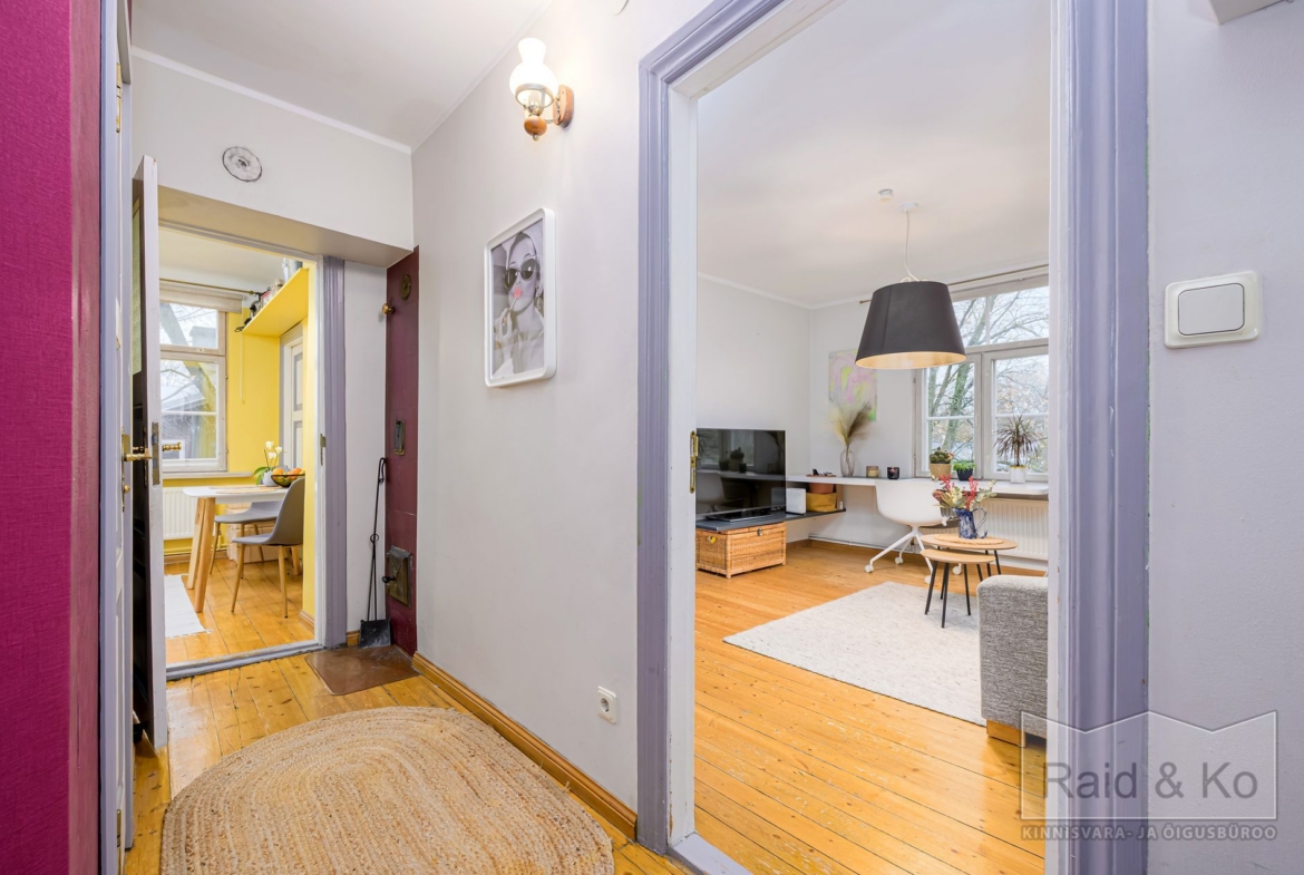 Eluruumide ja köögi põrandad on kaetud naturaalse puitlaudisega. Seinad on värvitud maitsekates, mahedates toonides. Sisekujunduses annavad lisaväärtust vanad, restaureeritud siseuksed.