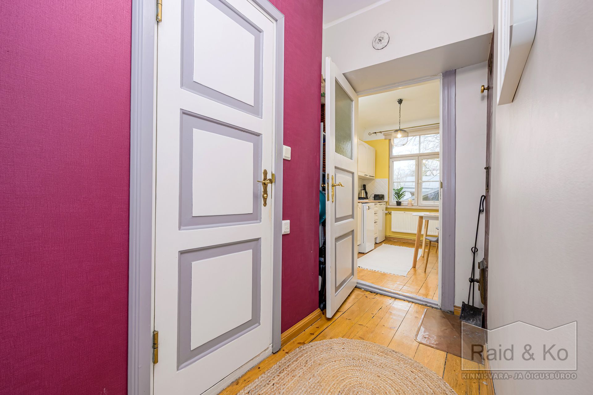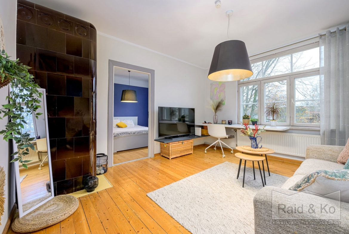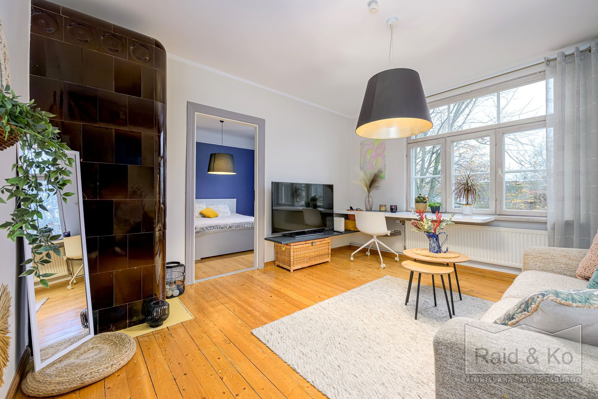 Eluruumide ja köögi põrandad on kaetud naturaalse puitlaudisega. Seinad on värvitud maitsekates, mahedates toonides. Sisekujunduses annavad lisaväärtust vanad, restaureeritud siseuksed.