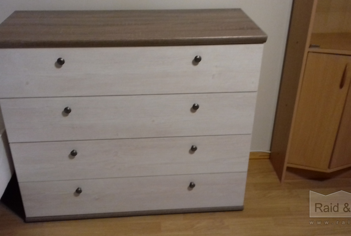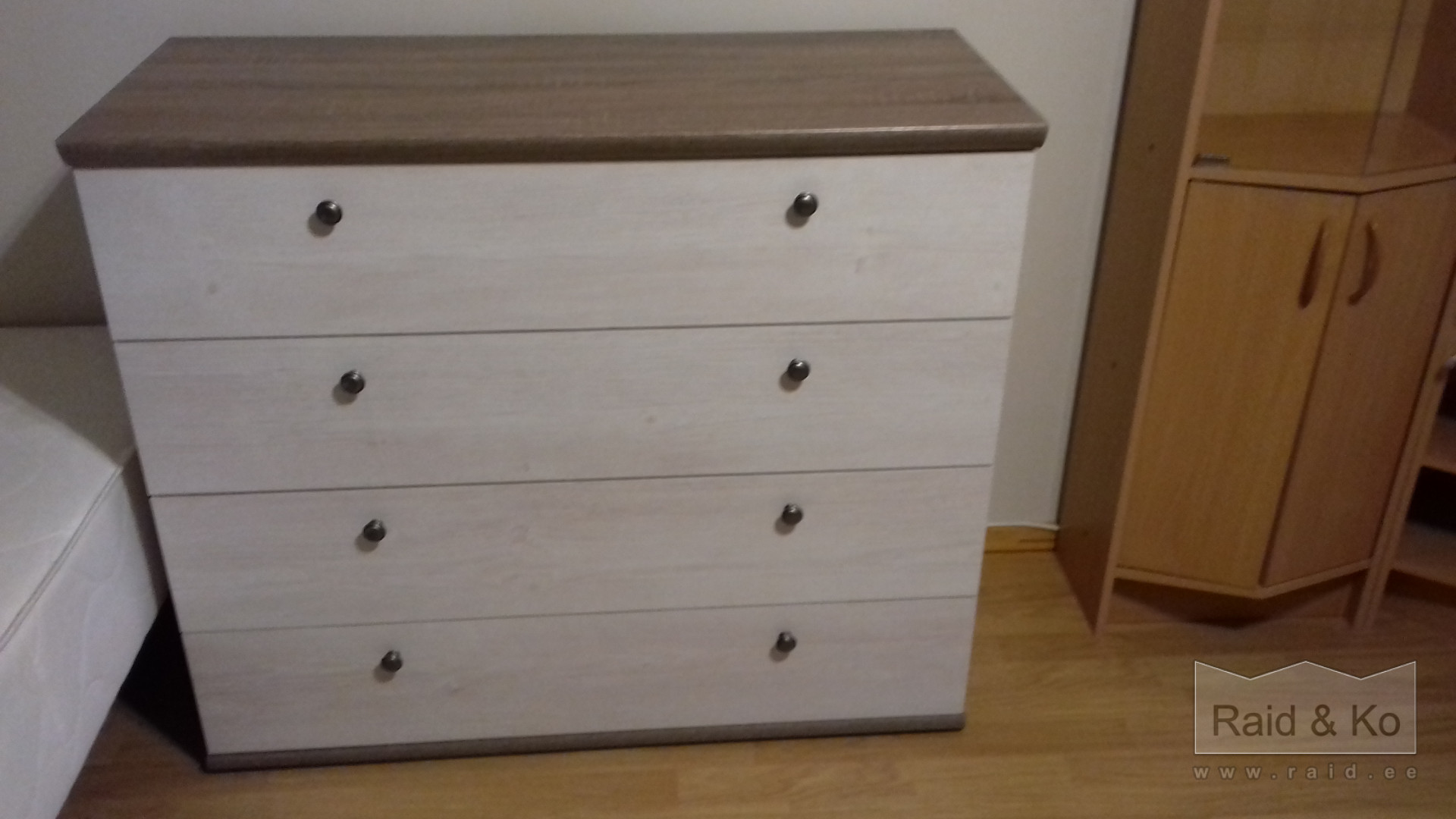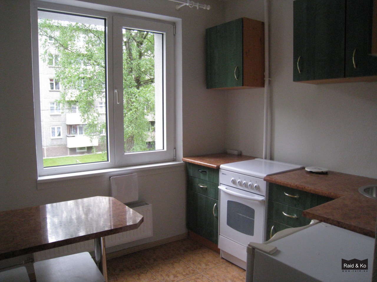 Korter on möbleeritud. Kõik fotodel olev mööbel jääb üürilise kasutusse. Olemas lisaks ka väike kirjutuslaud. Akendel on rulood, köögis on tänaseks uus keraamiline elektripliit + ahi. Vannitoas on olemas pesumasin.