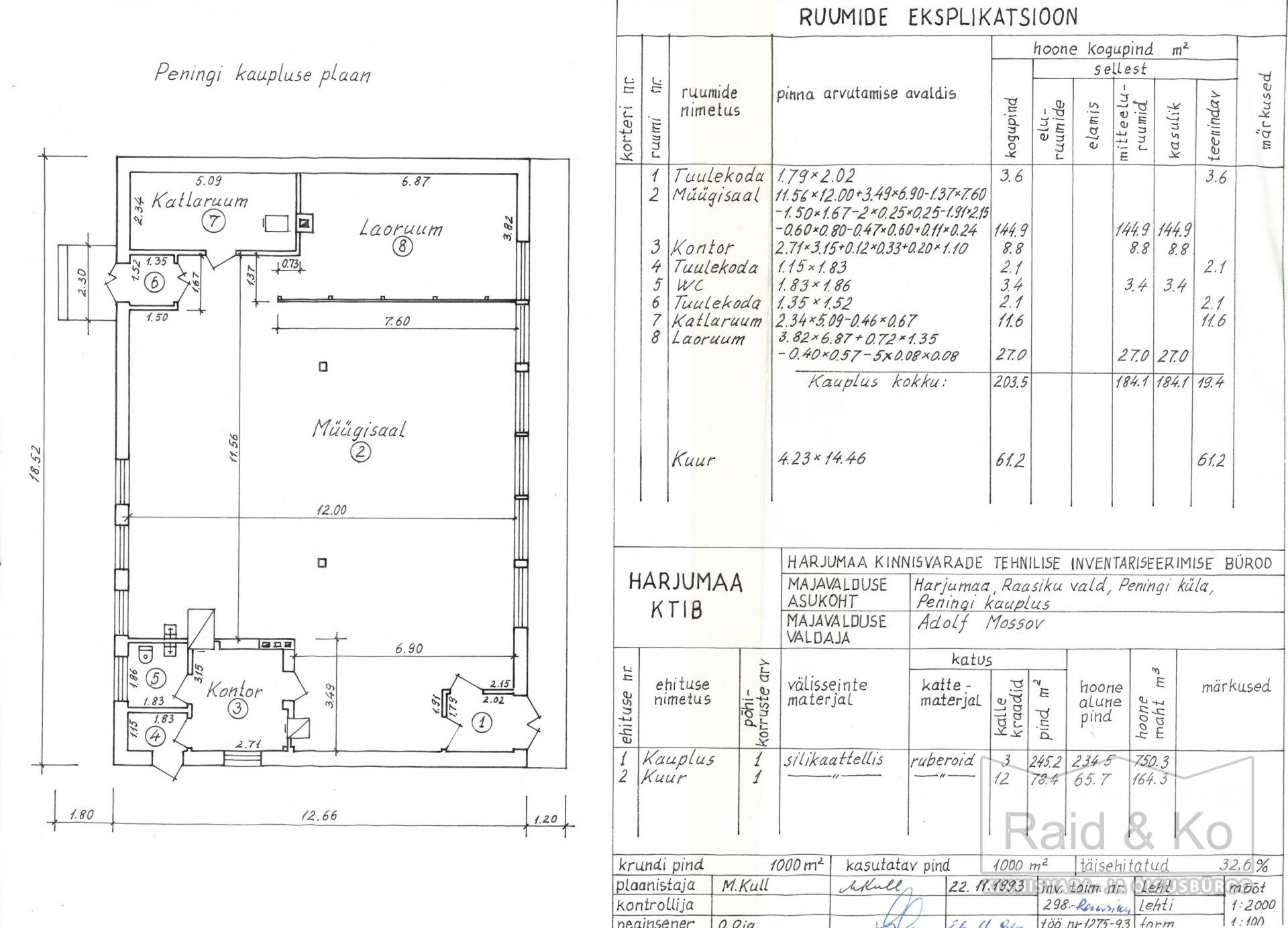100% ärimaa koos kaubandushoonega asub teede ristumiskohal Peningi Mõisa vastas. Tallinna kesklinnast 30 km. 70-ndatel ehitatud Peningi Kauplus on täna
