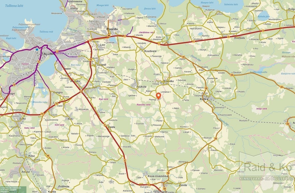 100% ärimaa koos kaubandushoonega asub teede ristumiskohal Peningi Mõisa vastas.
