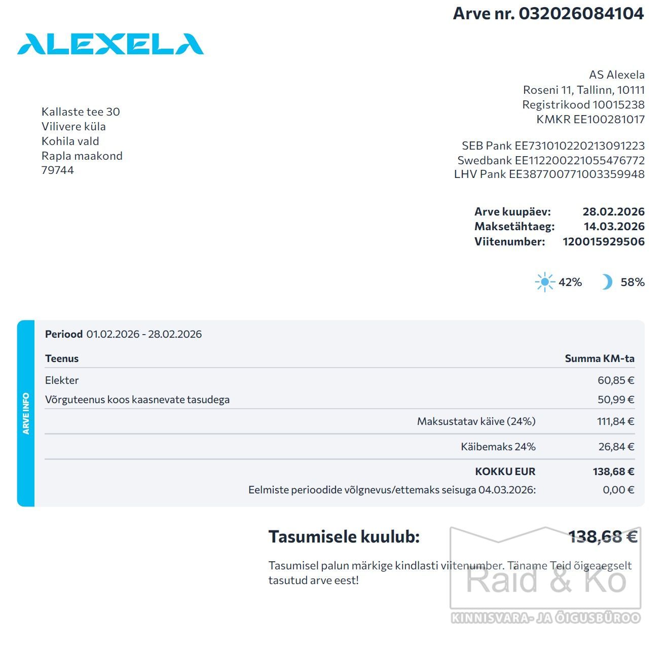 2026 külm jaanuar 151, veebruar 138 eur.