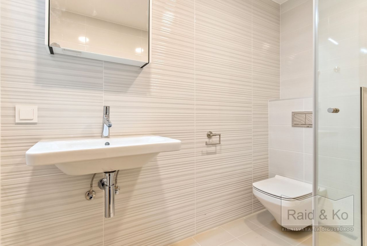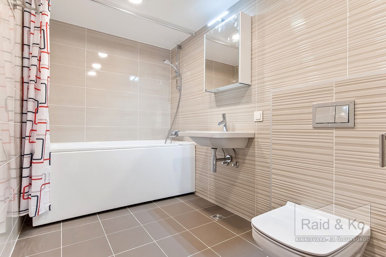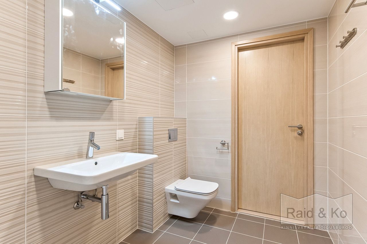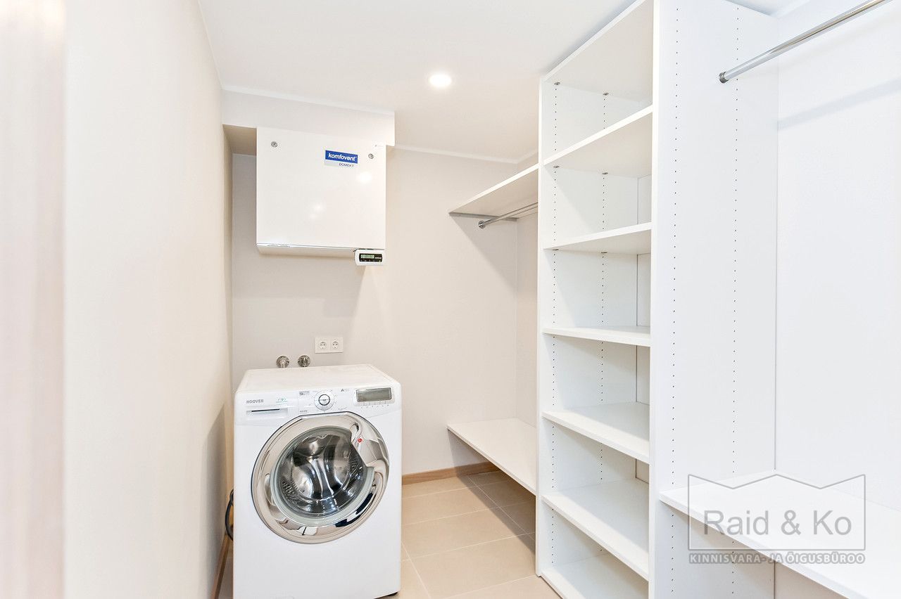 Korteris on nii vannituba kui ka duširuum. Esikust pääseb majapidamisruumi, kus on pesumasin ja riiulid.
