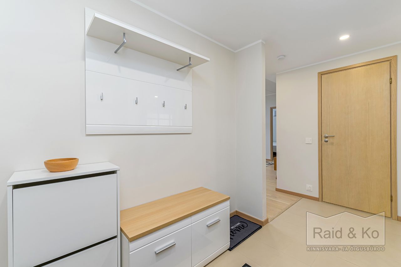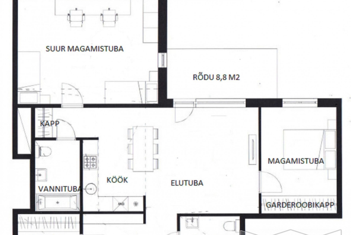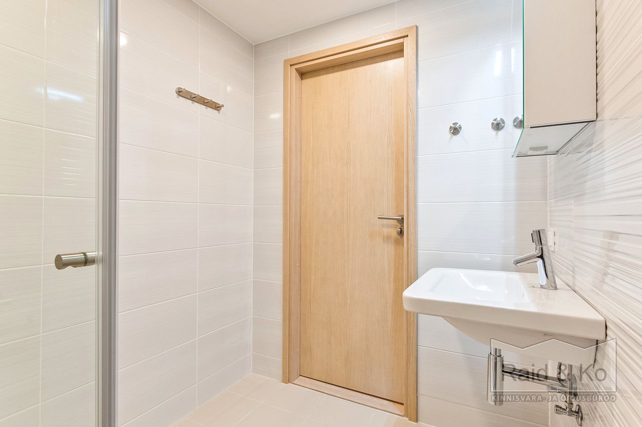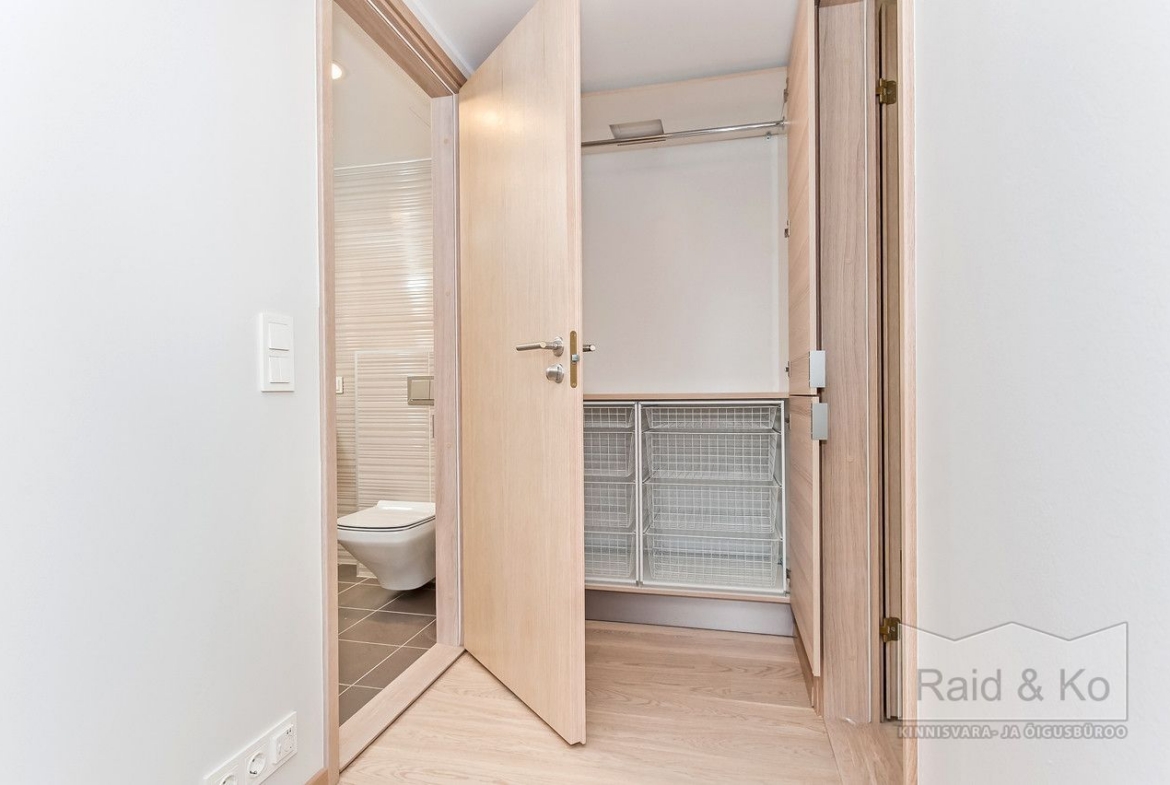 Korteris on nii vannituba kui ka duširuum. Esikust pääseb majapidamisruumi, kus on pesumasin ja riiulid.
