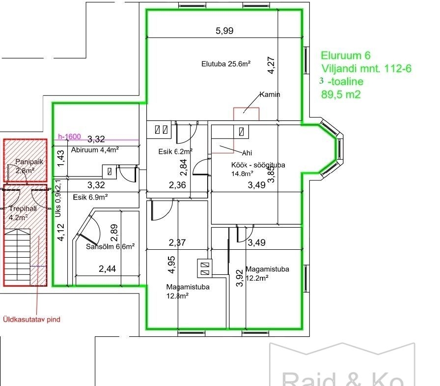 Korter asub maja teisel korrusel. Korteris õhksoojuspump, bullerjan ja kamin.