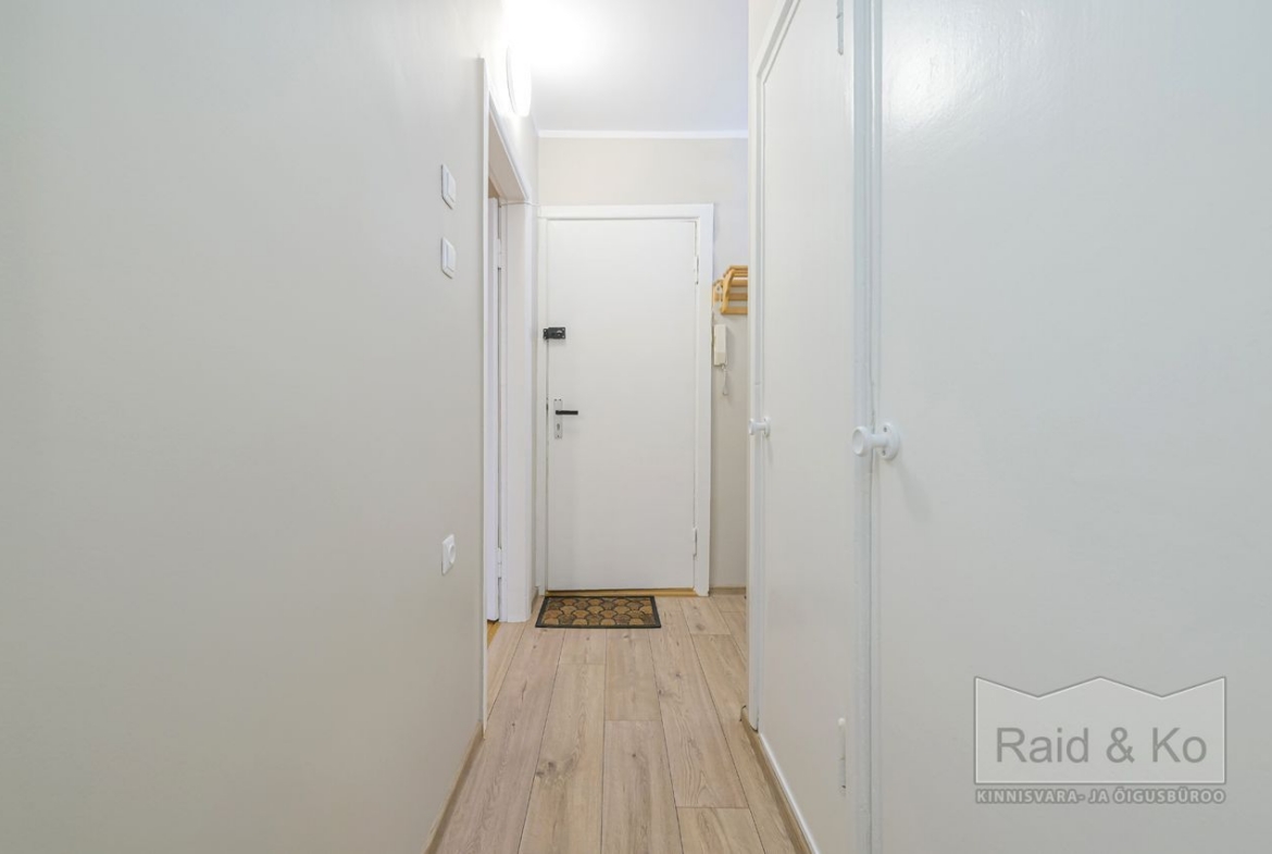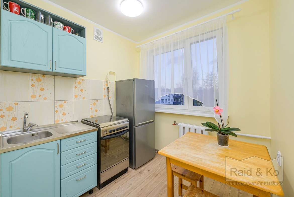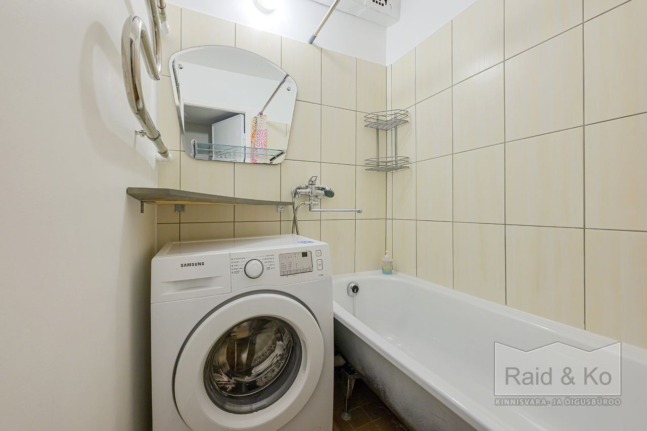 Põrandal laminaat. Korter on vaba ja valmis koheseks sissekolimiseks. Elutoas diivan-voodi, laud, toolid, kapid. Vannitoas pesumasin. Köögis külmkapp, gaasipliit, mööbel, laud, toolid. Korteril on rõdu ja esikus garderoob.