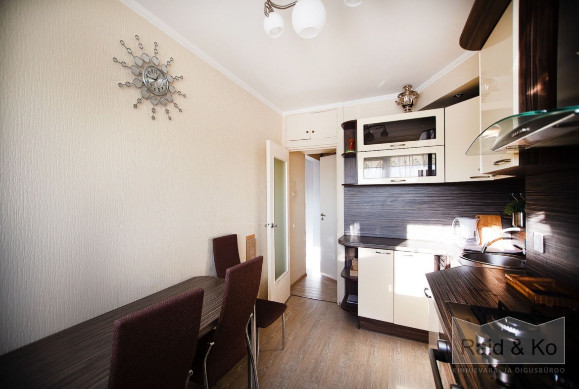Korter asub 9-kordse maja viimasel korrusel, on täielikult sisustatud ja paljude nutikate panipaikadega – kõik eluks vajalik mahub ära!