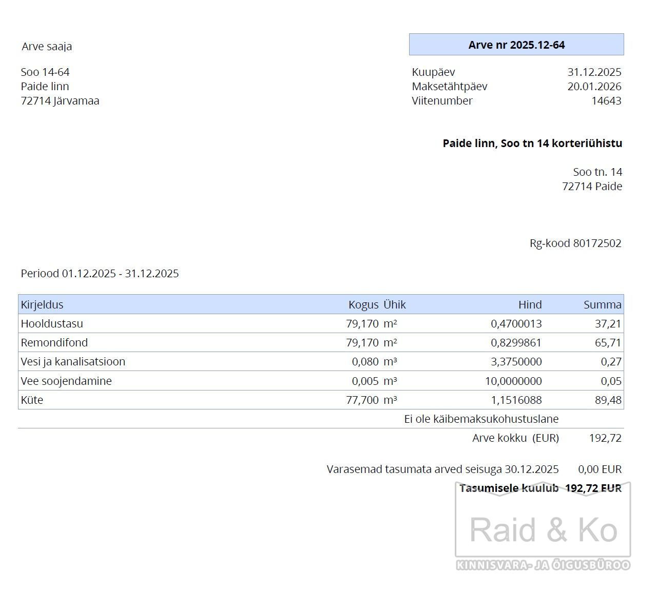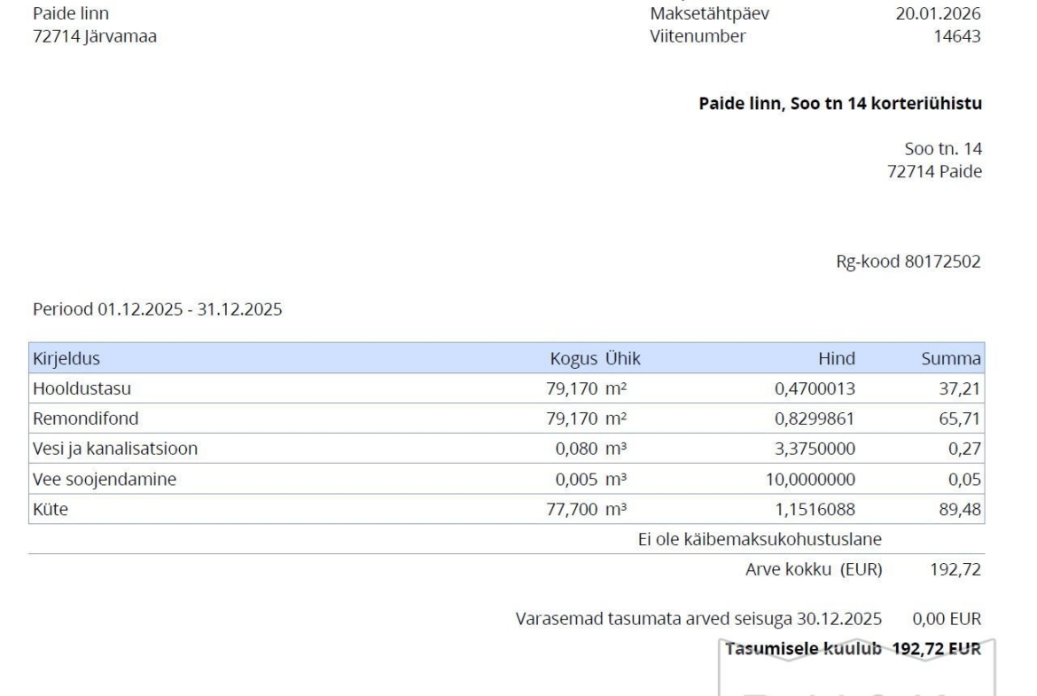 Korteriühistu arved on olnud 2025 aastal 200 euro ringis talvel