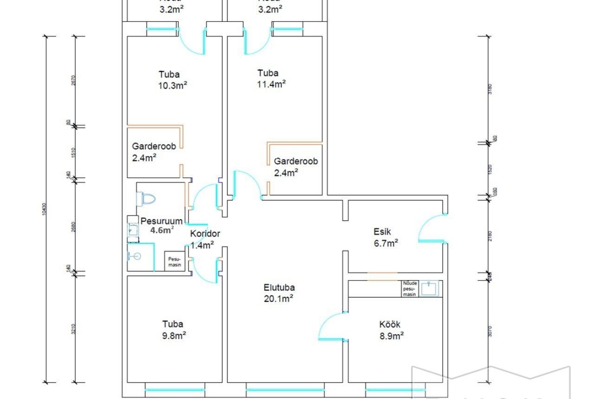 Korteri planeeringut on parendatud esiku, köögi ja vannitoa osas,