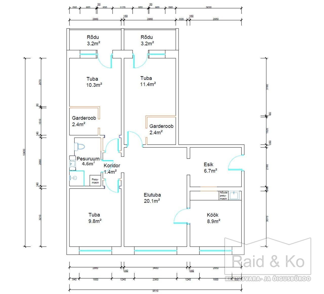 Kogu torustik, elekter ja nõrkvoolu kaabeldus on uus. Kõigis tubades