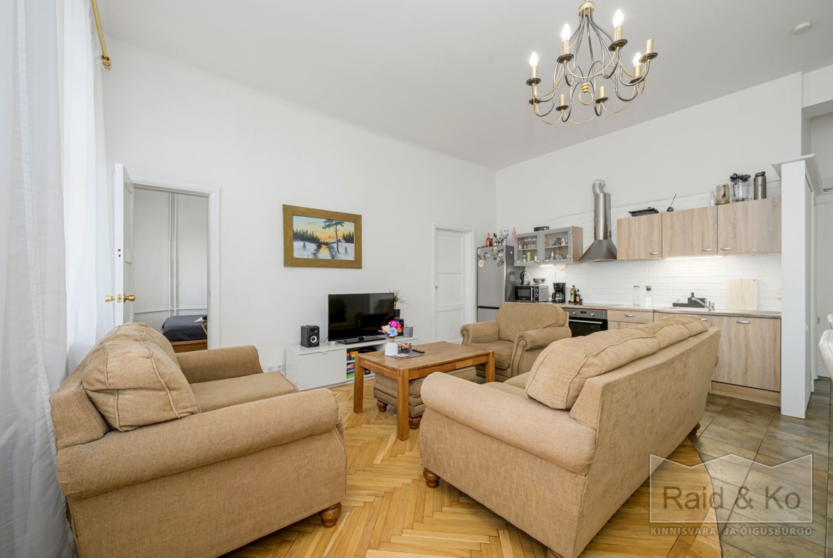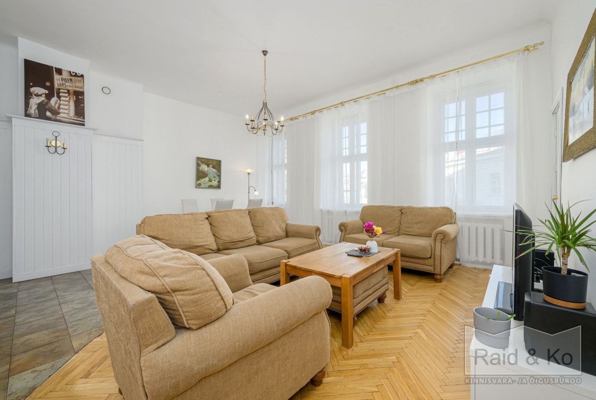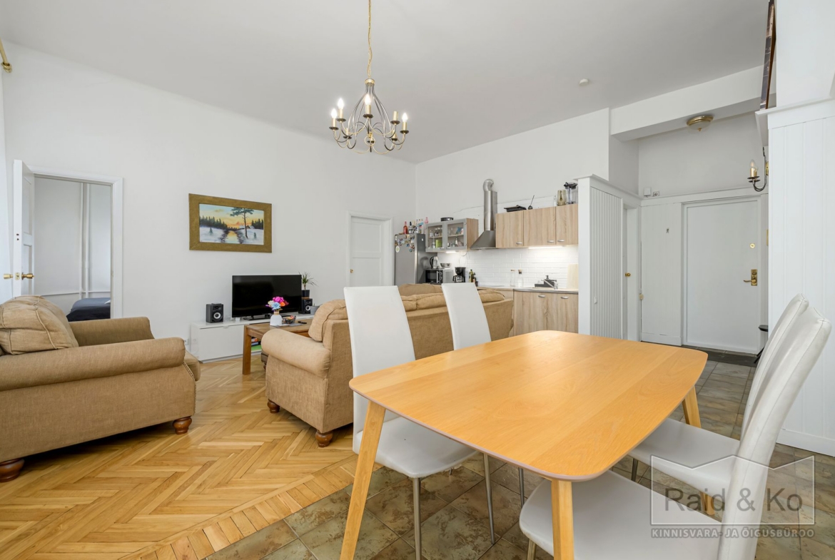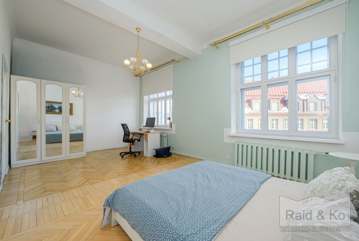 Korter on avar (77,7 m2) ning valgusküllane ja sellele lisavad luksuslikku hõngu tavapärasest kõrgemad laed.