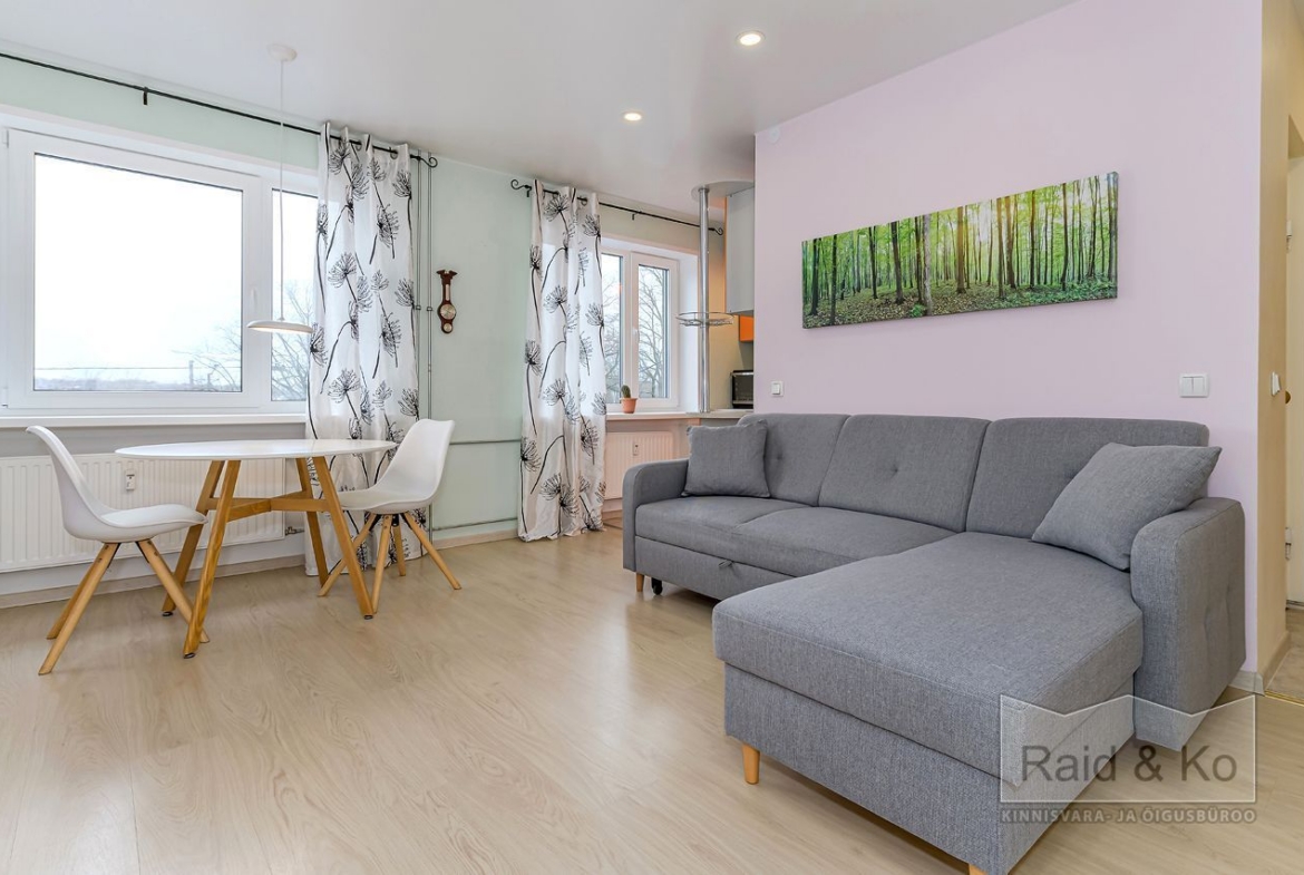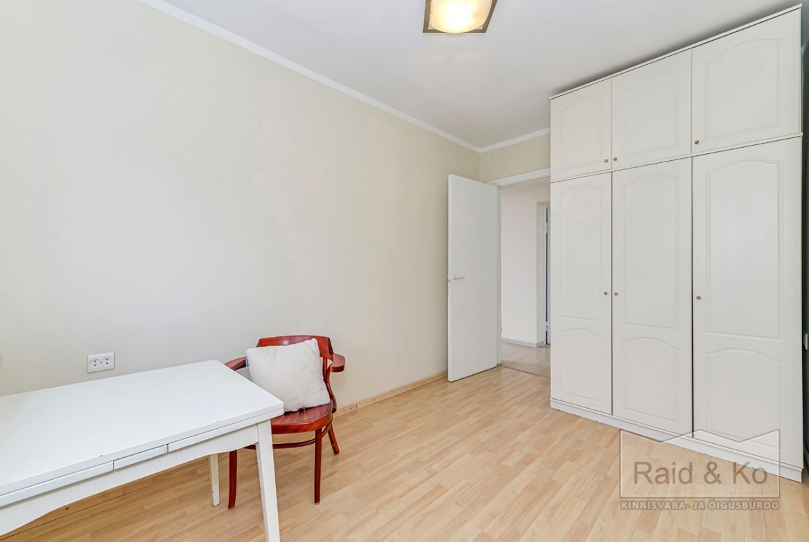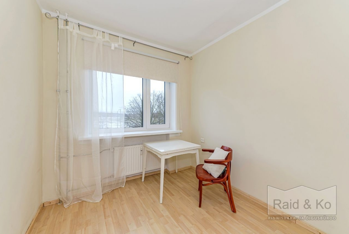 Avar ja valgusküllane korter mugava ja läbimõeldud planeeringuga. Aknad avanevad mõlemale poole, magamistuba vaiksesse rohelisse sisehoovi, elutuba, köök ja lisatuba tänava poole.