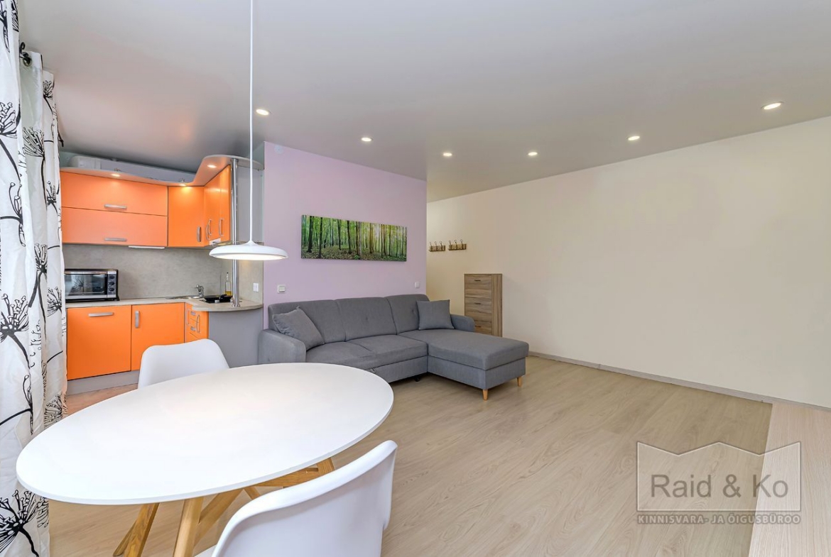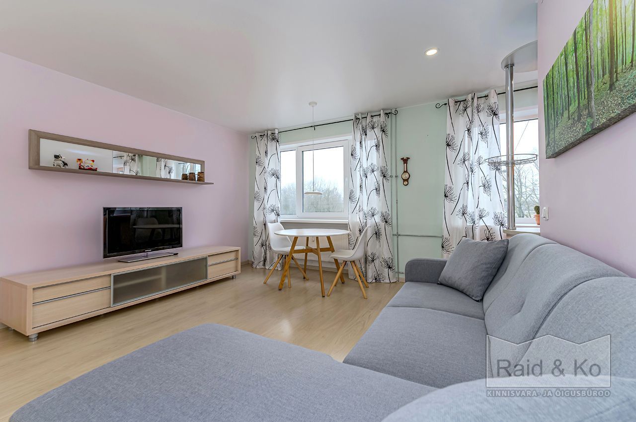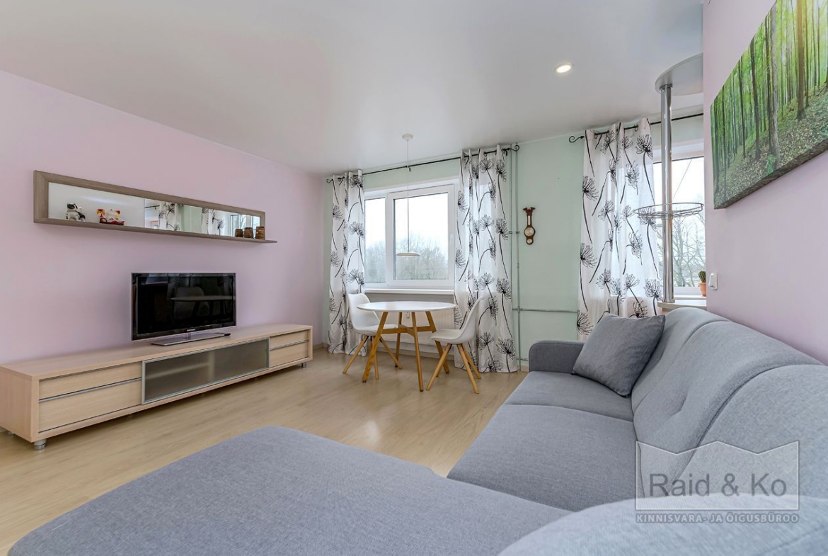 Paigaldatud on uued hea heliisolatsiooniga pakettaknad. Elutuba on ühendatud köögiga, kus on sisseehitatud mööbel ja tehnika: pliit, ahi, nõudepesumasin, õhupuhasti ja külmkapp.