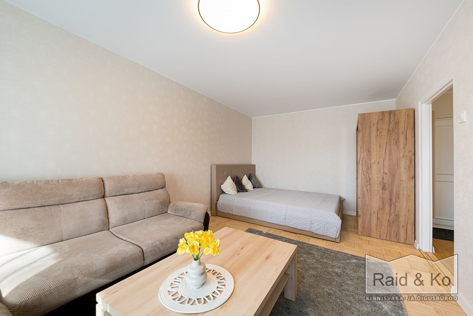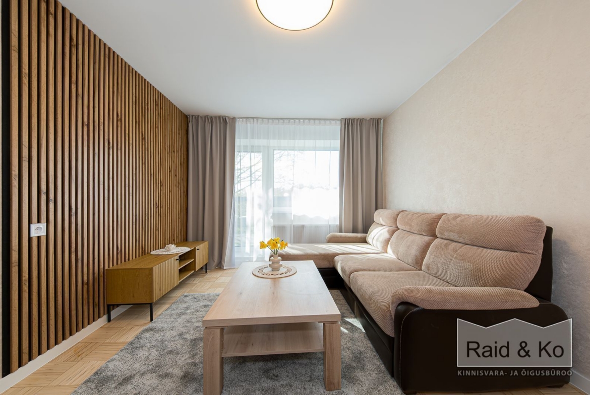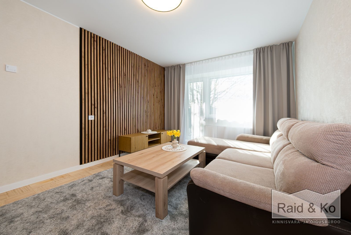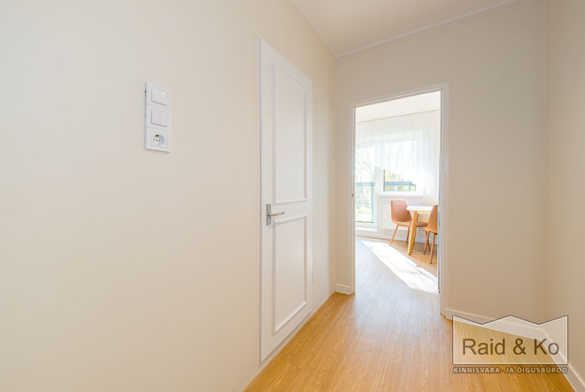 Üürile anda hubane remonditud 1-toaline korter suure rõduga, Korterisse jääb sisse piltidel olev mööbel ja tehnika.