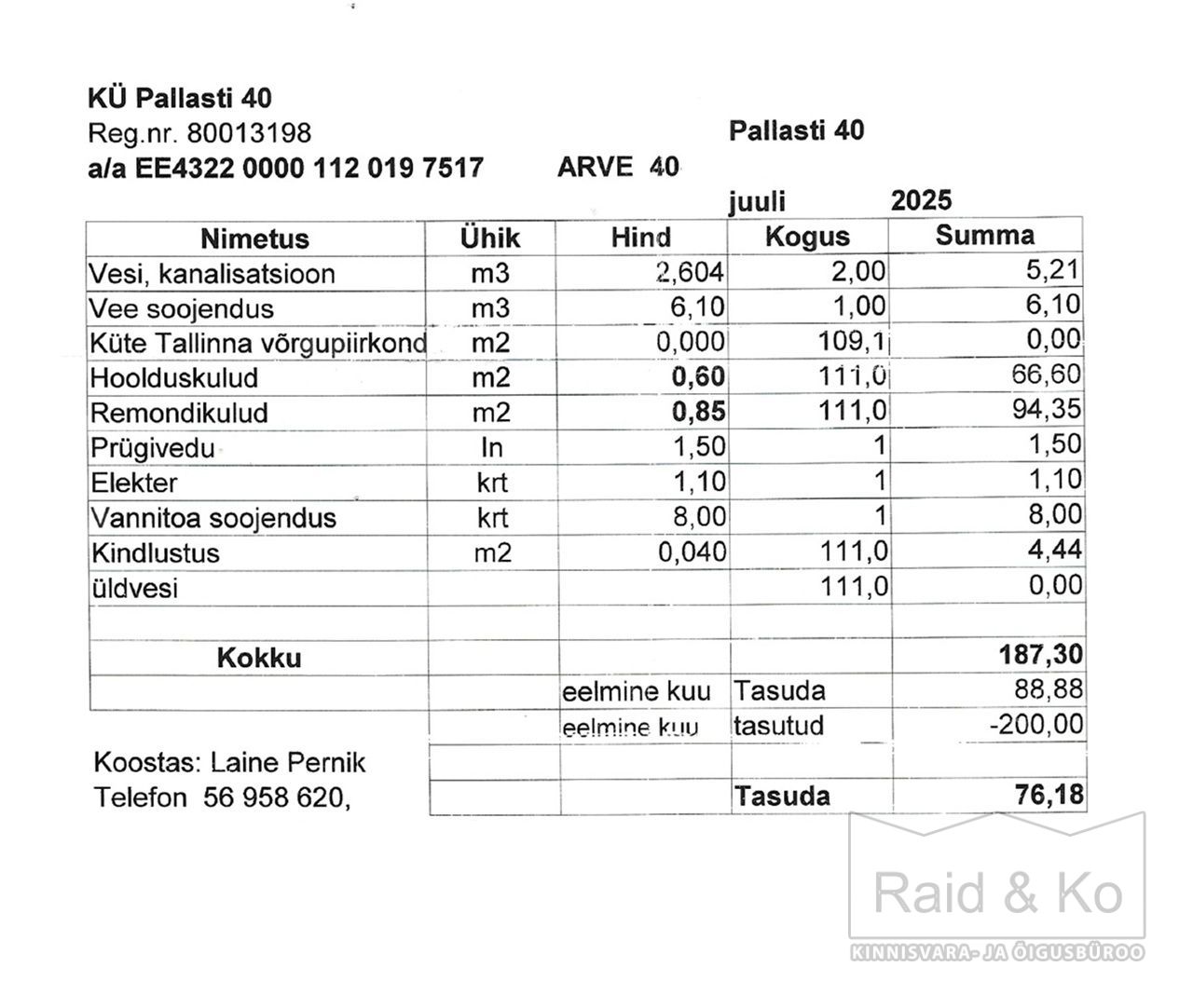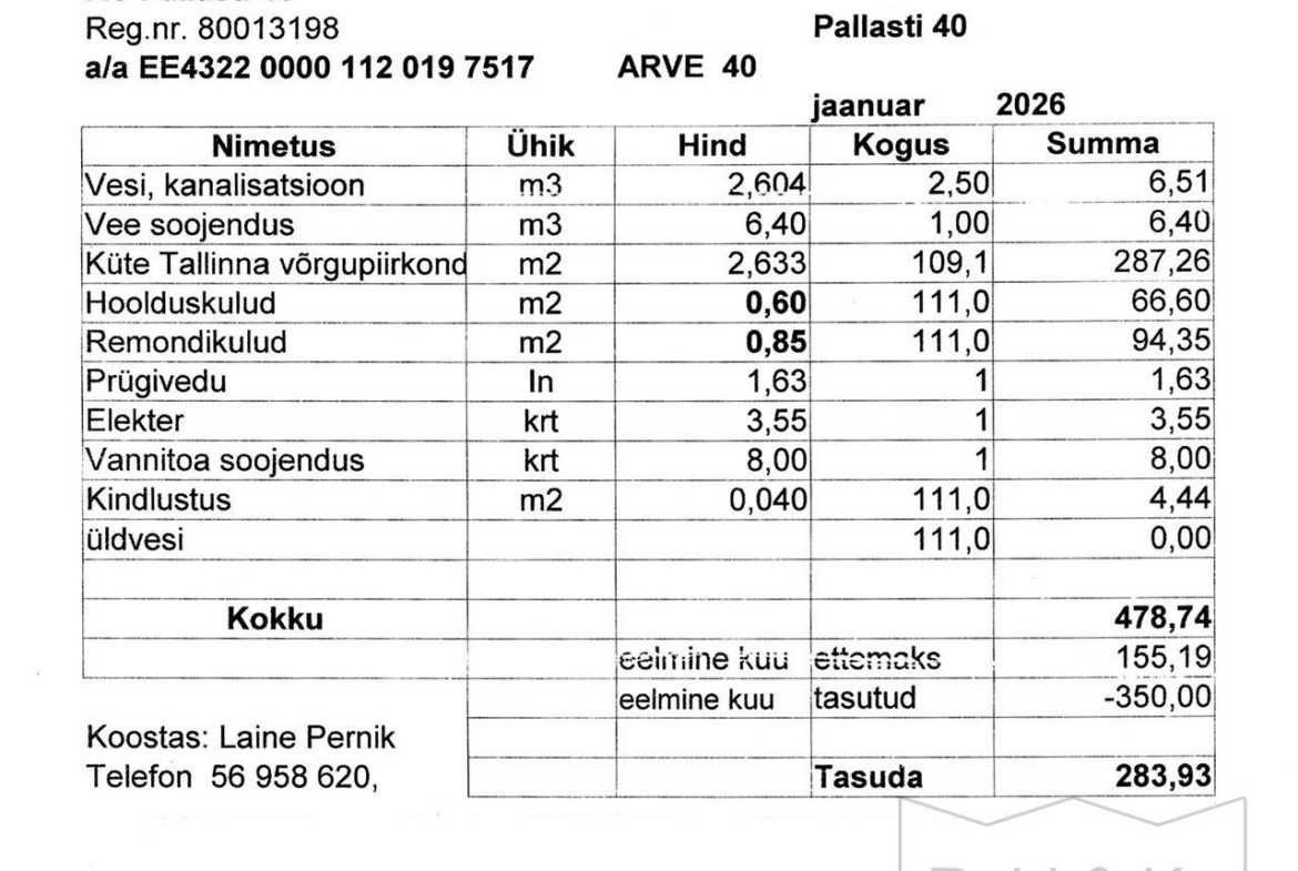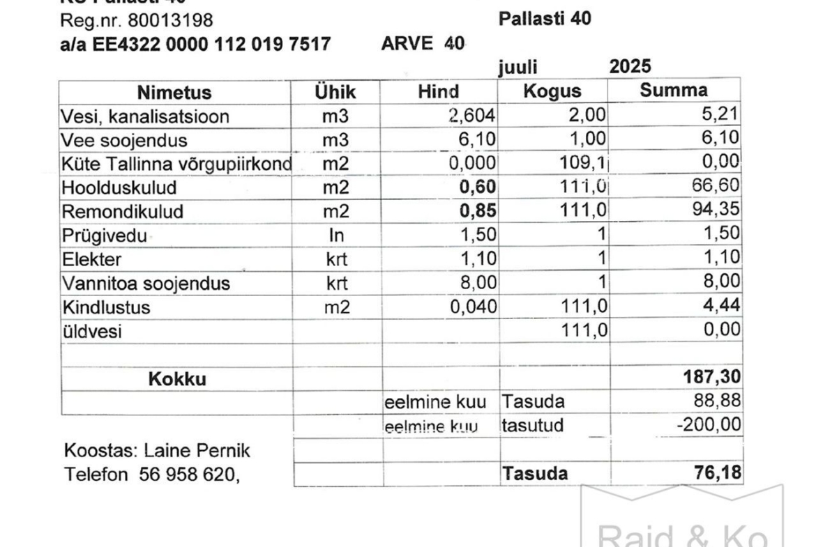 Korteri kulud on olnud 2025 aasta suvel 187 eurot kuni