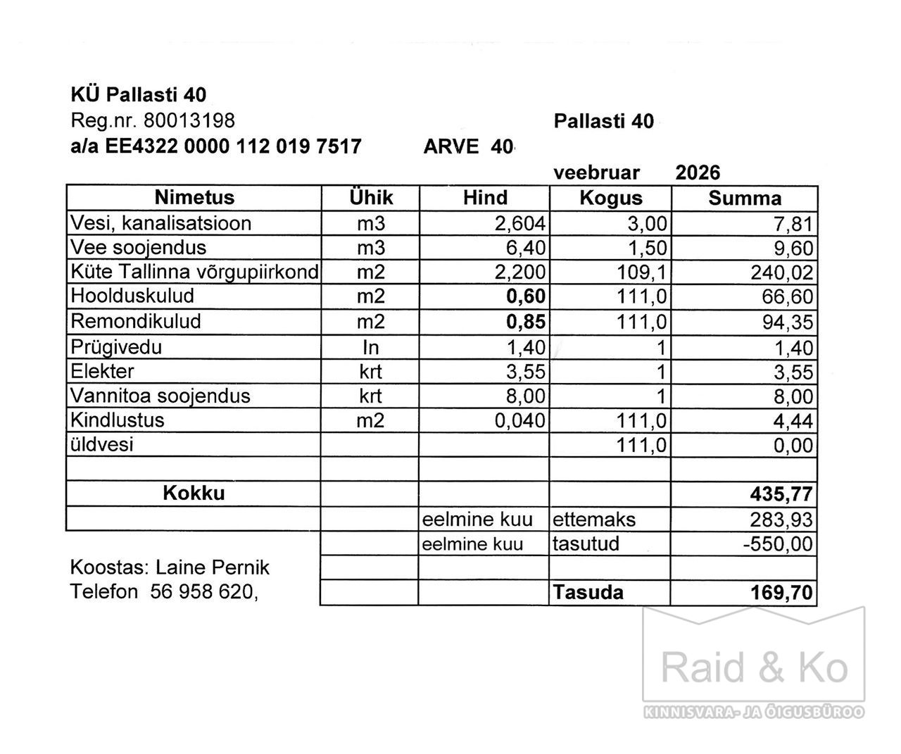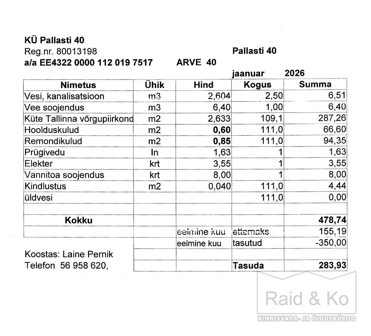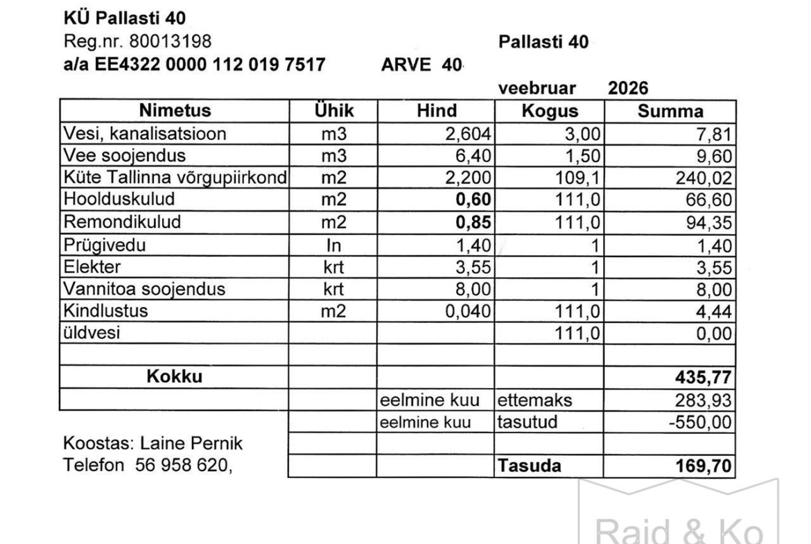 KÜ arvestab kulusi korterile 111 m2 kohta.
