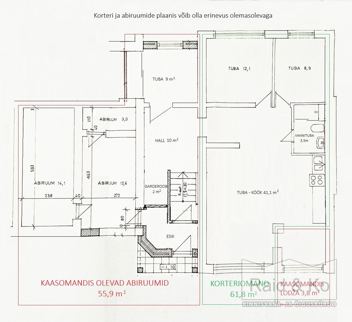 Korteri ehk eriomandi pind on de – jure 61,8 m2