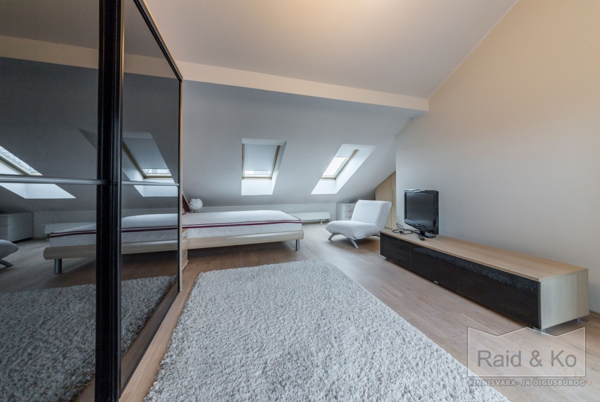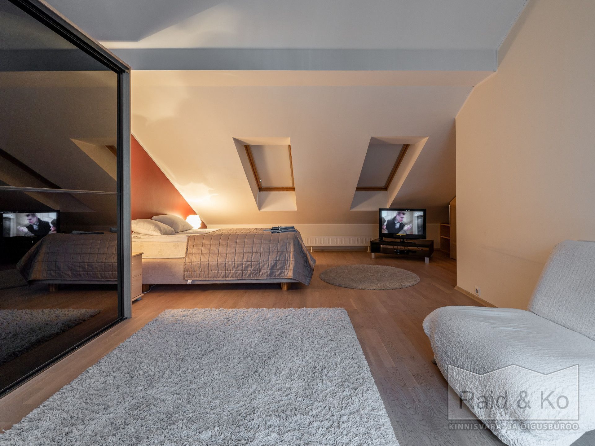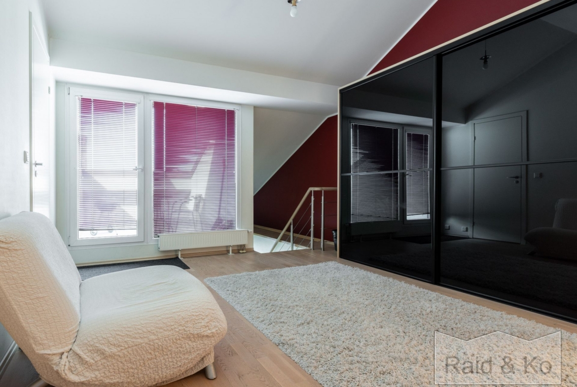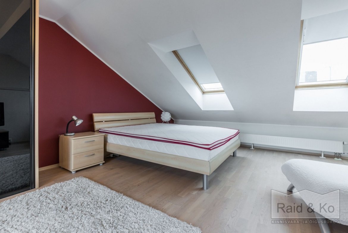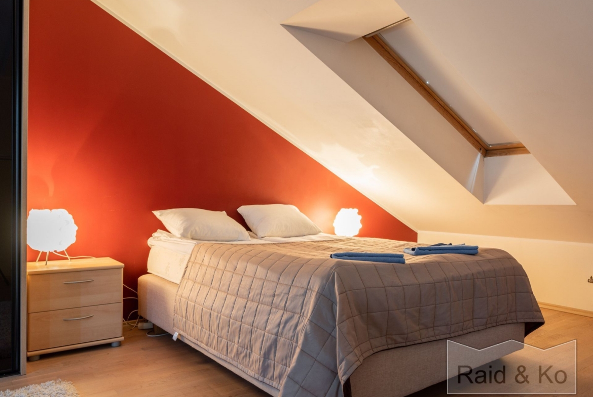 Tehtud ümberplaanering ning kvaliteetsete materjalidega viimistlus. Põrandatel naturaalne tammeparkett, maitsekalt värvitud seinad. Akendel paksud rulood. Köögis sisseehitatud köögimööbel tehnikaga (pliit, ahi, külmik, nõudepesumasin, õhupuhasti). Magamistubades ja esikus on paigaldatud suured garderoobikapid. Vannitoas pesumasin ja mahukas vann. Mansardkorrusel on magamistuba, saun ja rõdu, kus võib nautida linna vaadet.