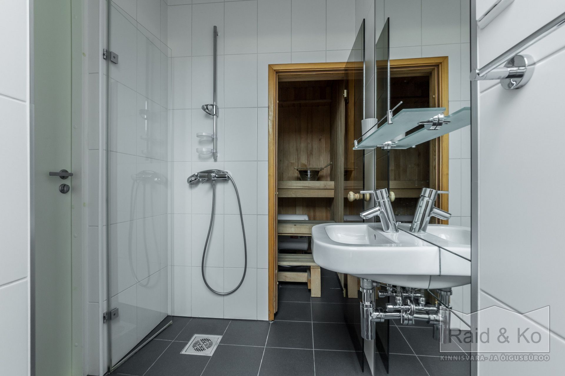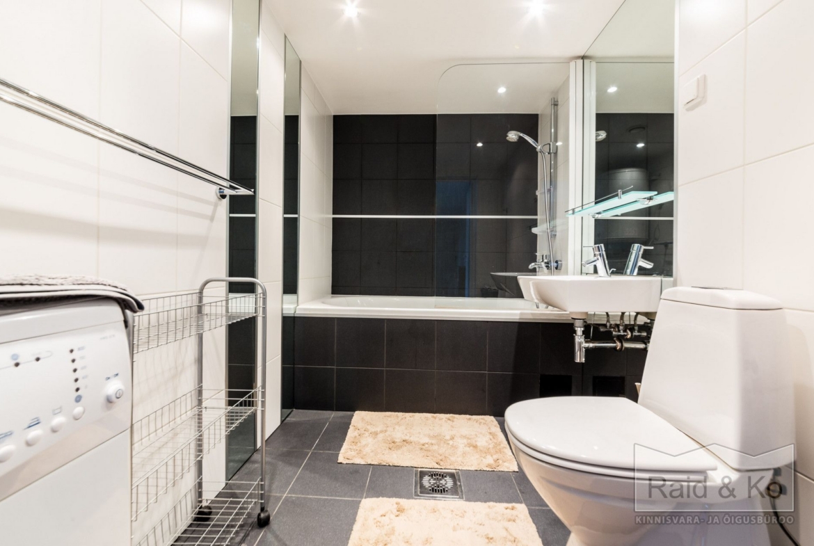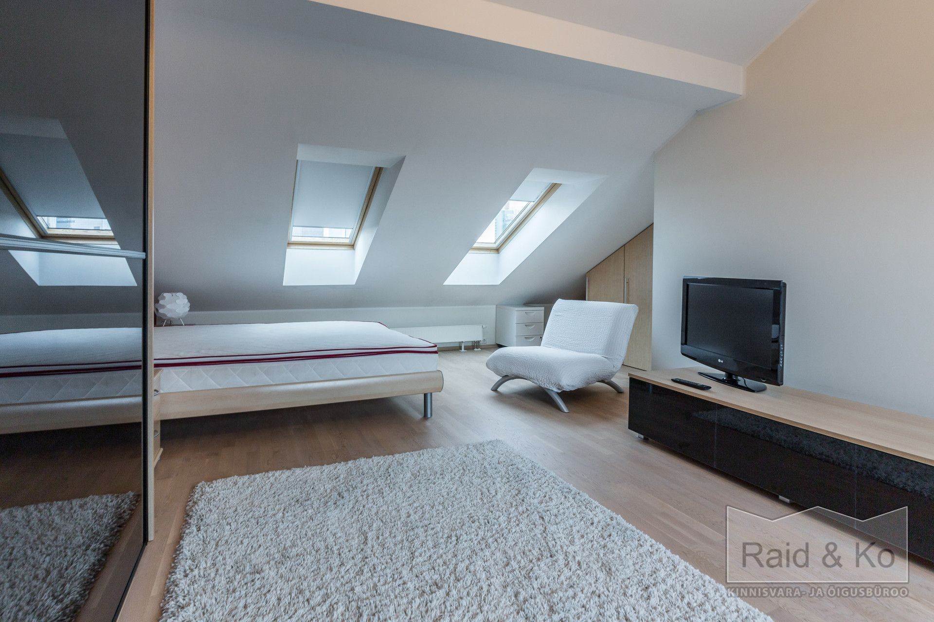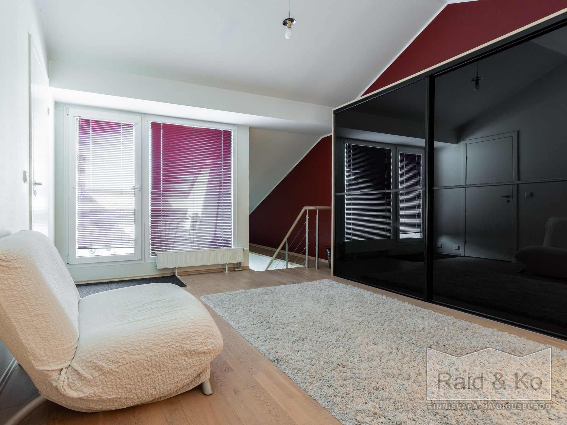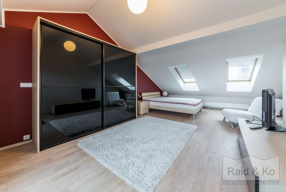 Tehtud ümberplaanering ning kvaliteetsete materjalidega viimistlus. Põrandatel naturaalne tammeparkett, maitsekalt värvitud seinad. Akendel paksud rulood. Köögis sisseehitatud köögimööbel tehnikaga (pliit, ahi, külmik, nõudepesumasin, õhupuhasti). Magamistubades ja esikus on paigaldatud suured garderoobikapid. Vannitoas pesumasin ja mahukas vann. Mansardkorrusel on magamistuba, saun ja rõdu, kus võib nautida linna vaadet.