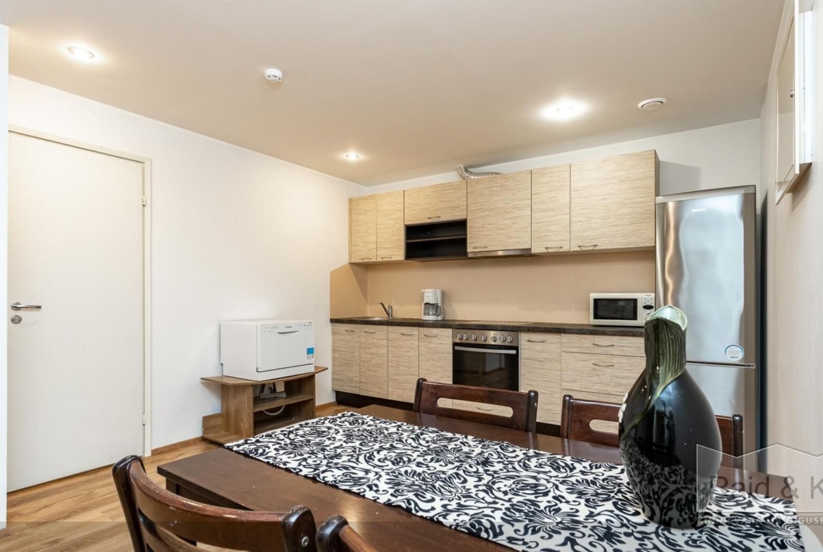 Maitsekalt lahendatud interjöör, kõik aknad vaikse hoovi poole. Elutoaga ühenenud avatud köök ja söögiosa. Magamistoas on mahukas riidekapp ja suur voodi, väljapääas mahuka rõdule. Eraldi sanitaarruum pesumasina, kraanikausi ja WC-ga.