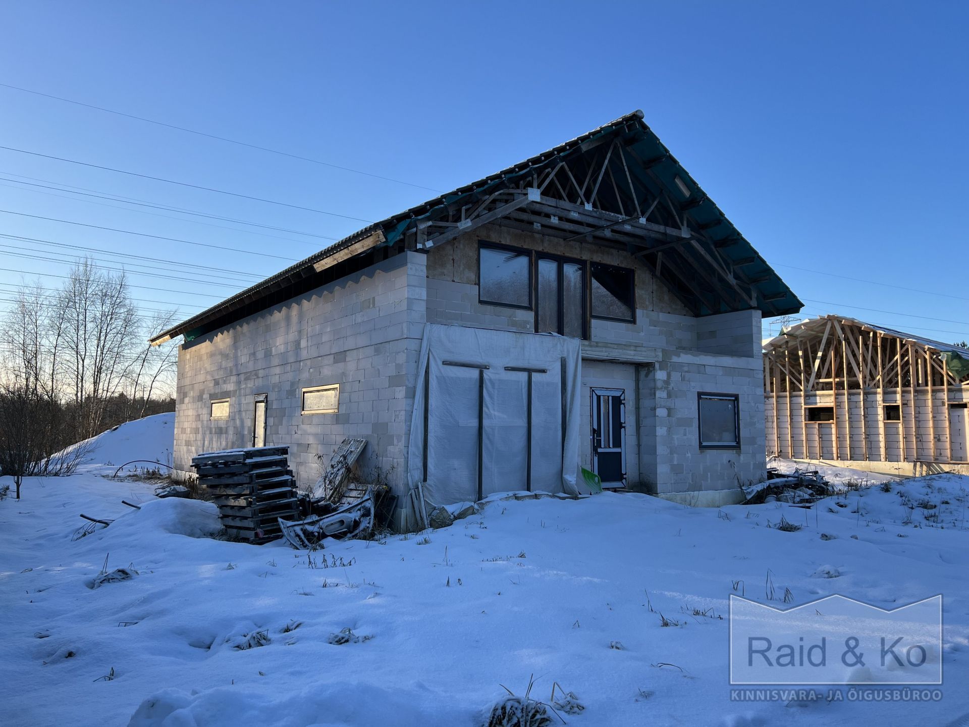 Müüa vaikses ja rahulikus piirkonnas, tupiktänavas, Saku lähedal pooleliolev kivimaja. Uus omanik ehitab juba edasi.