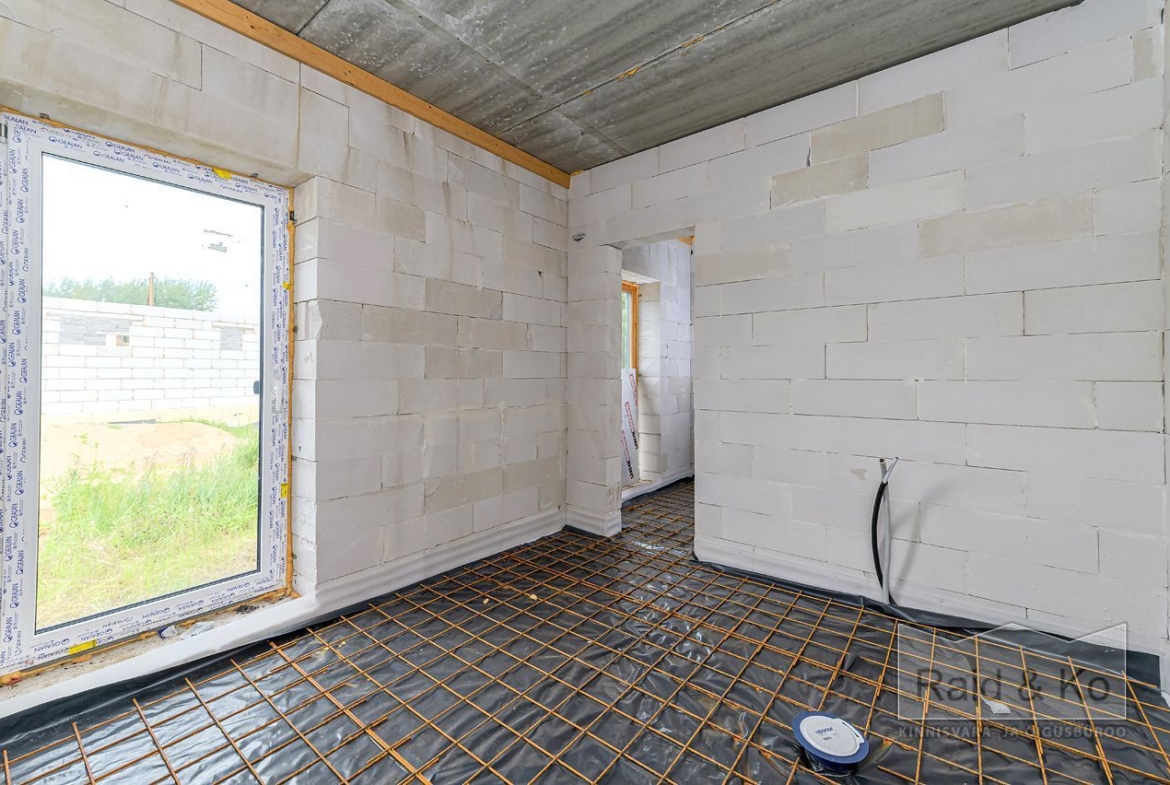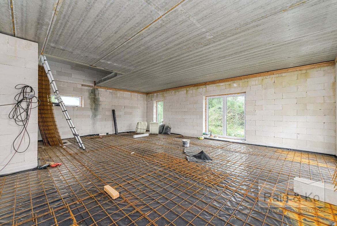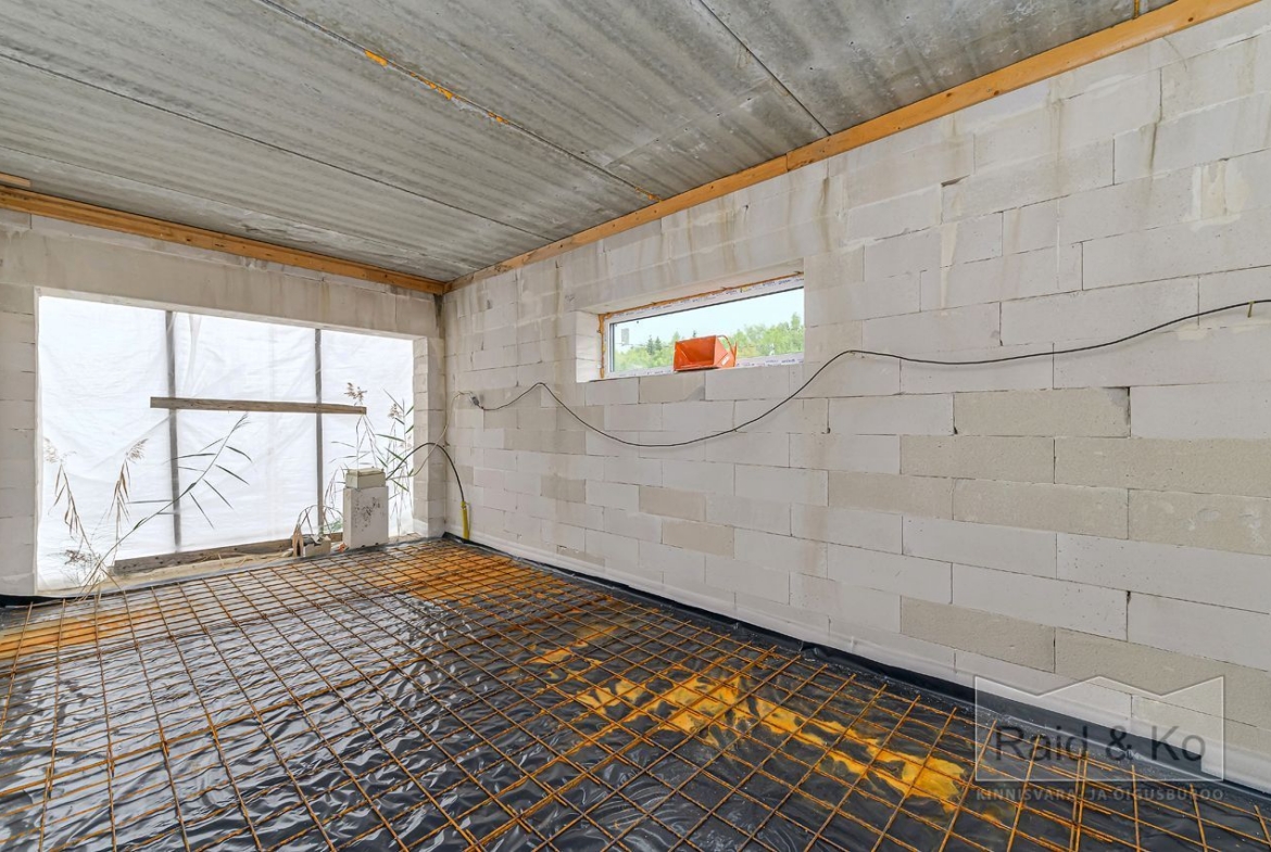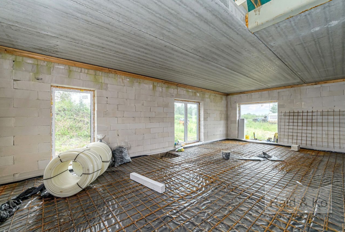 Ettevalmistused on tehtud vesipõrandakütte torustiku paigaldamiseks – paigaldatud armatuurvõrk ja 200 mm penoplast soojustuseks.